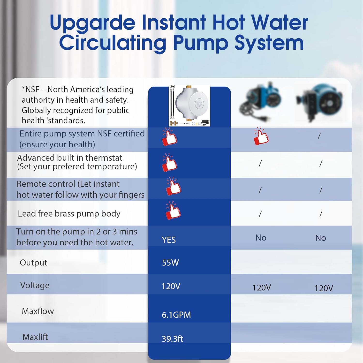 NSF - The most authorized health and safety organization in North America. Globally recognized organization for public health standards. Our Smart Instant Hot Water Recirculating Pump has achieved NSF certification, providing reliable performance. With a commitment to quality, it ensures a seamless and health-conscious solution for instant hot water. Choose excellence in every aspect with our NSF certified recirculating pump.