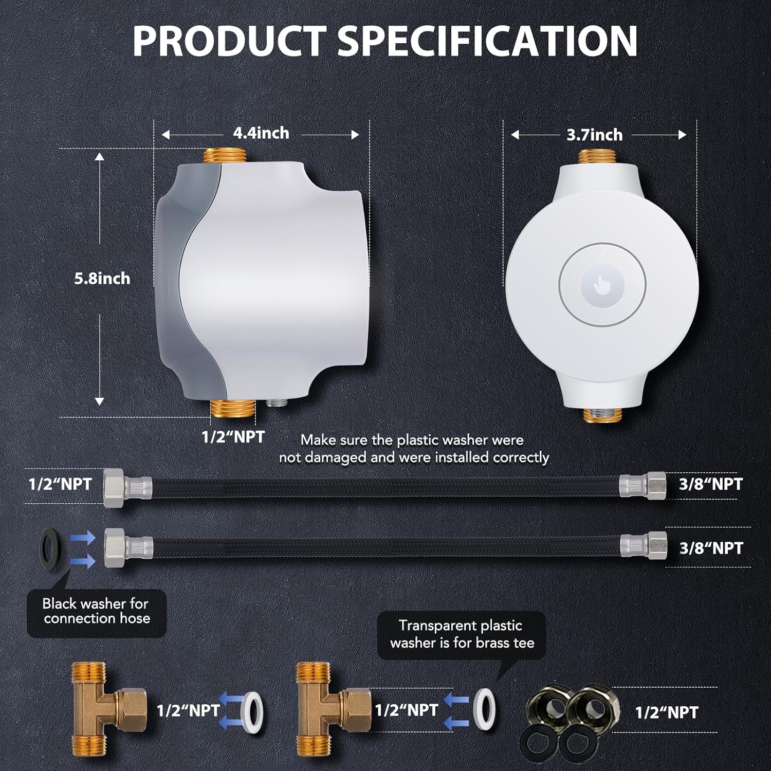 High-tech and highly accurate built-in water flow sensor and two built-in thermostats. (One to measure the pipe water temperature and the other one to measure the pump ambient air temperature). High flow and high lift smart pump with digital permanent magnet brushless 24v DC motor ensures high-speed circulation. Just turn on the hot water faucet for 2 seconds and turn it off. High speed, super quiet, and safe.