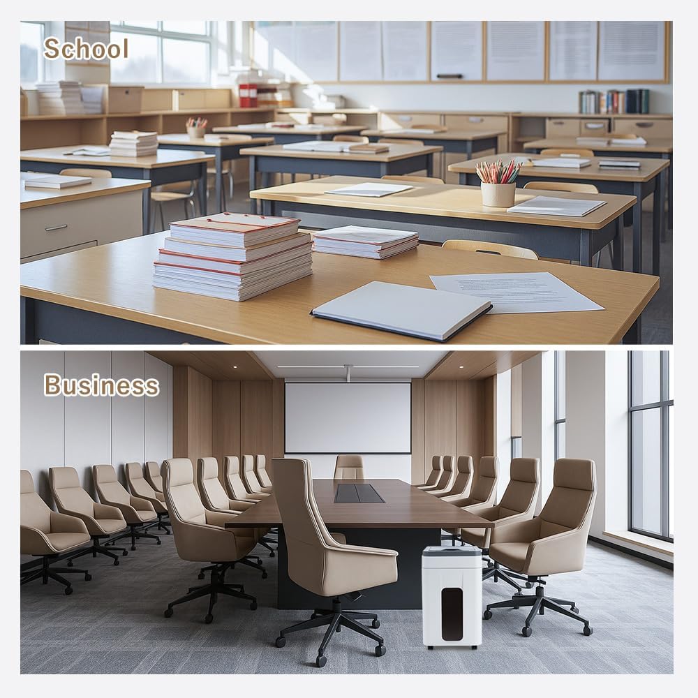 Smart Protection & Anti-Jam Tech: Features auto start/stop, overload alerts, thermal shutdown and manual reverse for jams. Intelligent feed rollers and criss-cross blade design of the shredded paper machine ensures jam-free, low-noise shredding critical for professional offices.