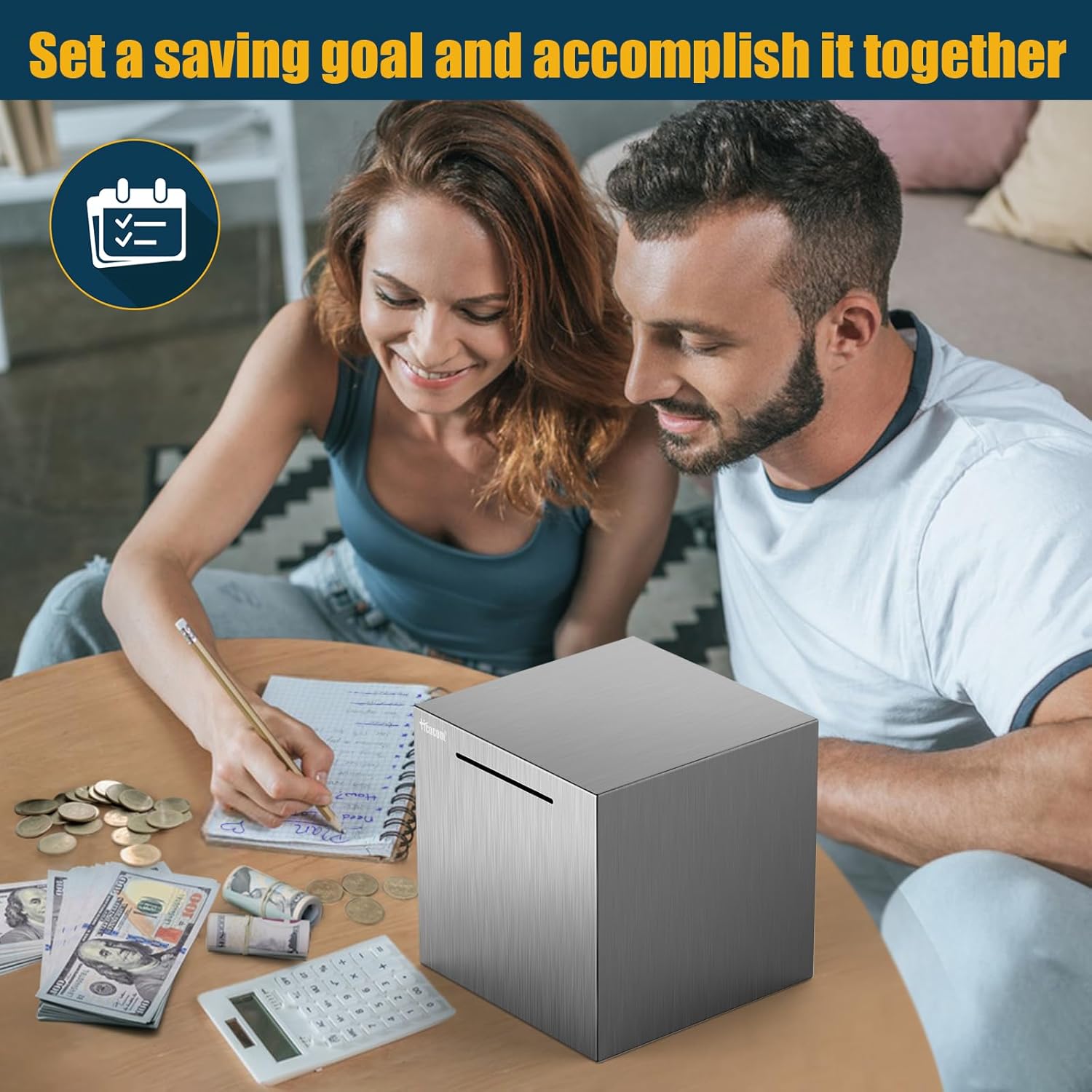 【Large Capacity Bank】The metal-saving box has two sizes and colors that meet everyone's needs, Medium, Large, Silver, and Black. Each metal bank holds different savings. The dimensions of this Silver Large bank are 7.9" x 7.9" x 7.9". It can store about 10,000 coins or 1,500 paper money at full capacity. Please choose a suitable size before your purchase.