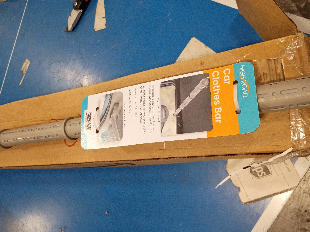 A Wrinkle Free Travel Accessory that Fits Sedans, Trucks, Vans and SUVs - perfect for college students, moving, camping, dry cleaning runs and road trips, the High Road car clothes bar expands to fit most vehicles Made for Big Loads and Long Hauls - adjustable telescoping bar and end hangers are constructed of rust-resistant, powder coated steel, enabling the High Road Car Clothes Bar to hold 30 lbs.of weight, even when fully extended No Slipping or Sliding - rubberized grip sleeves and dividers keep hangers and garments in place, even on tight turns for a smoother, wrinkle free ride Fast and Easy to Install in Any Vehicle - attaches two ways - pivoting end hangers can be turned down to hook over car grab handles, or rotated upright to hang securely from garment hooks Quality Construction and Durable Materials - metal interior rod extends from 35" to 59" long to fit most vehicles, no assembly required. High Road has been designing innovative car storage solutions at our office in Portland Maine since 1990.