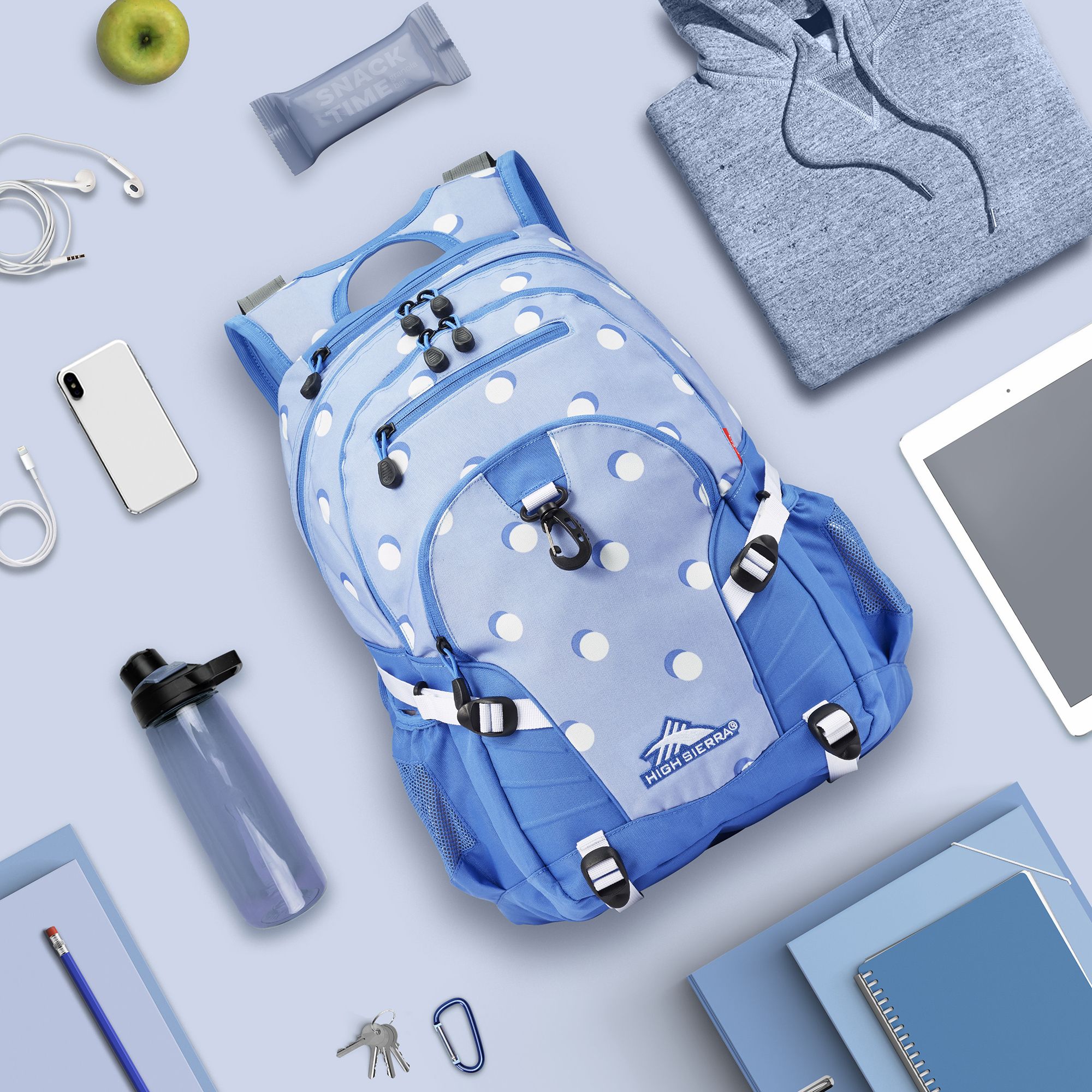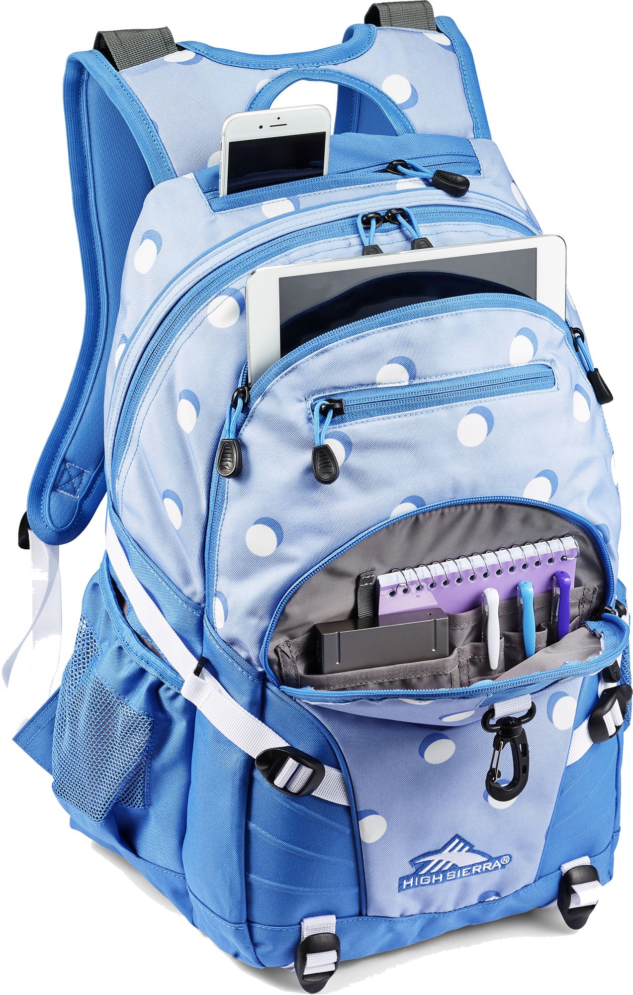 Set out for the day in style with the High Sierra® Loop Daypack Backpack. This multi-compartment bag offers premium organization with multiple pockets, a media pocket for your headphones or cell phone and a key fob. Dual side pockets let you take your favorite drink on the go. Its yoke style back and padded shoulder straps provide maximum comfort whether you’re gone for the day or on an extended trip.