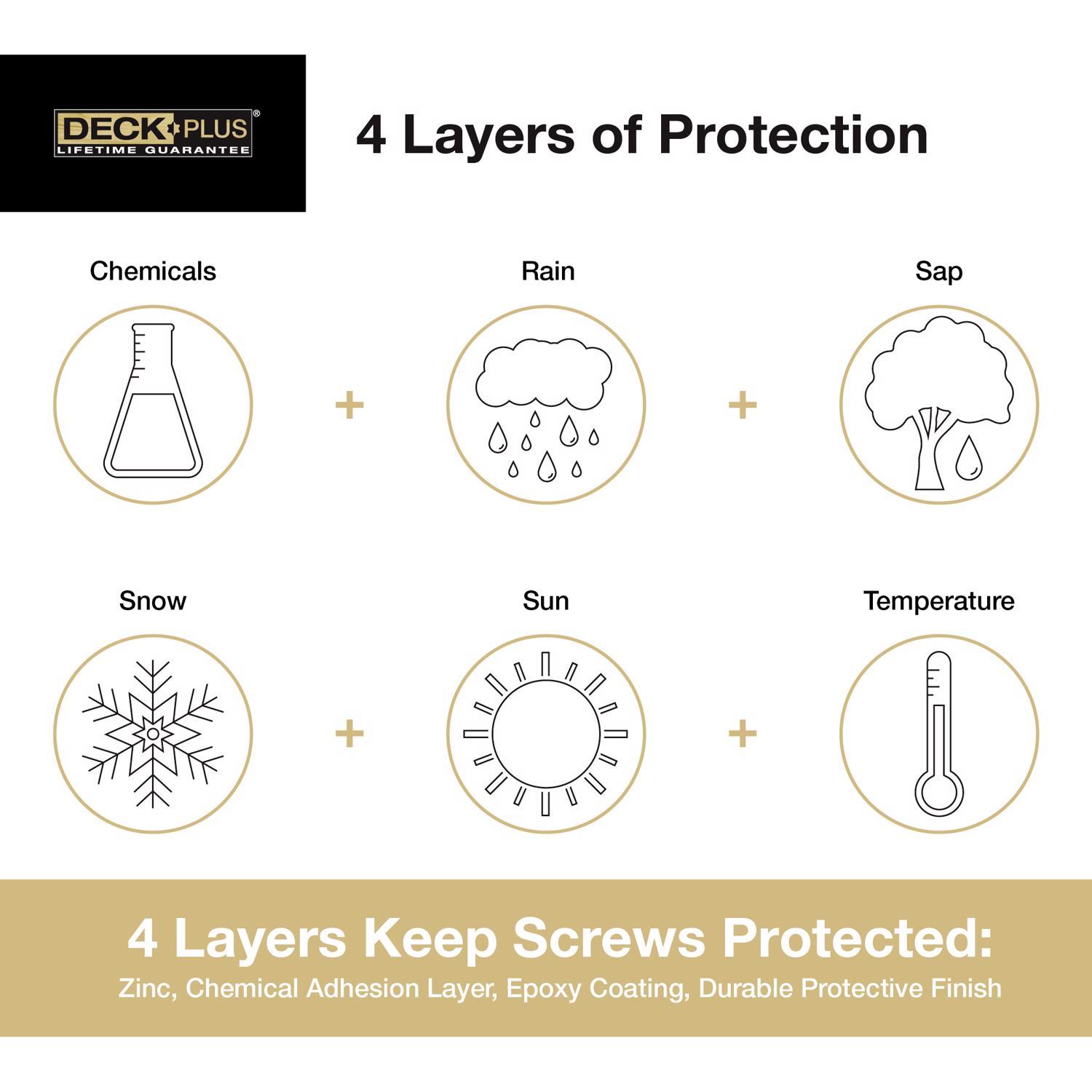 Deck Plus exterior deck screws offer a comprehensive finishing fastener solution, including exterior wood, composite, and trim uses. Deck Plus requires no pre-drilling and is perfect for all of your decking, fencing and exterior wood project needs.