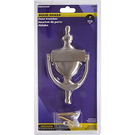 Hillman Hardware Essentials 852724 Satin Nickel Door Knocker, Durable 7 Inch, 9 oz Ideal decorative accent for your front door Serves as a great alternative to a doorbell for announcing visitors Durable construction ensures long-lasting use Appealing design enhances the aesthetic of your entryway Made of polished solid brass for excellent corrosion protection Can be engraved for personalization, adding a unique touch to your home