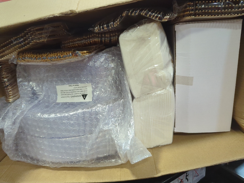 Complete Set for 50 Guests – This set includes 50 pcs of 10.25" dinner plates, 50 pcs of 7.5" dessert plates, 50 pcs of 9oz cups, 50 pcs of 7.9" knives, 50 pcs of 7.48" forks, 50 pcs of 6.93" spoons, and 50 pcs of napkins. NOTE: One guest is expected to use one dinner plate, one dessert plate, one knife, one fork, one spoon, one cup, and one napkin — totaling 7 items per guest. (50 guests × 7 items = 350 total items in the set).
