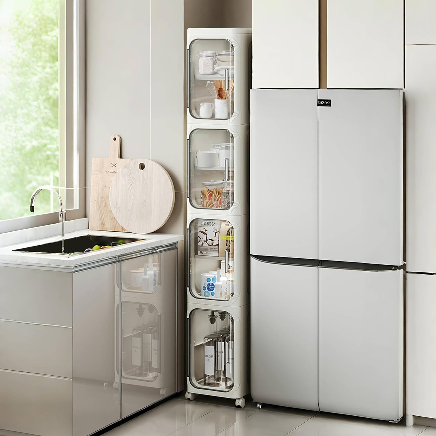 【Folds and stacks for compact living】Our slim storage cabinet are pre-assembled and designed to fold flat in seconds for easy storage or transportation. Stack multiple units vertically to maximize vertical space without compromising floor area, ideal for tight spaces.