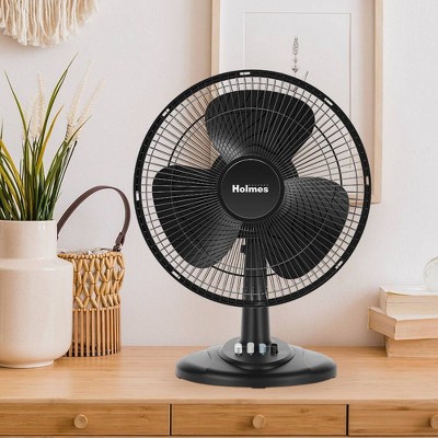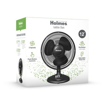 Holmes 12" Oscillating 3 Speed Adjustable Table Fan with Push Button Controls
