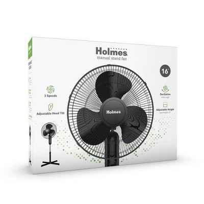 Holmes 16" Oscillating 3 Speed Manual Stand Fan Black