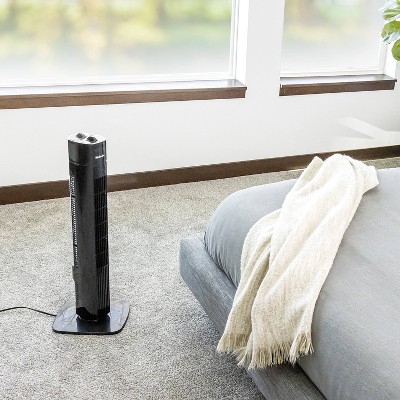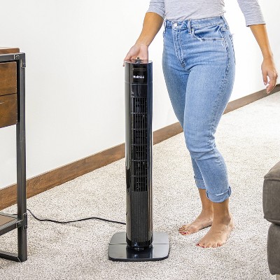 The Holmes® 31” Tower Fan with three speed settings goes with the flow. This space-saving, oscillating fan cools any room in the house. An auto shut-off timer lets you control air flow and duration, and the integrated carry handle makes it easy to move from the living room to the bedroom, and every room in between.