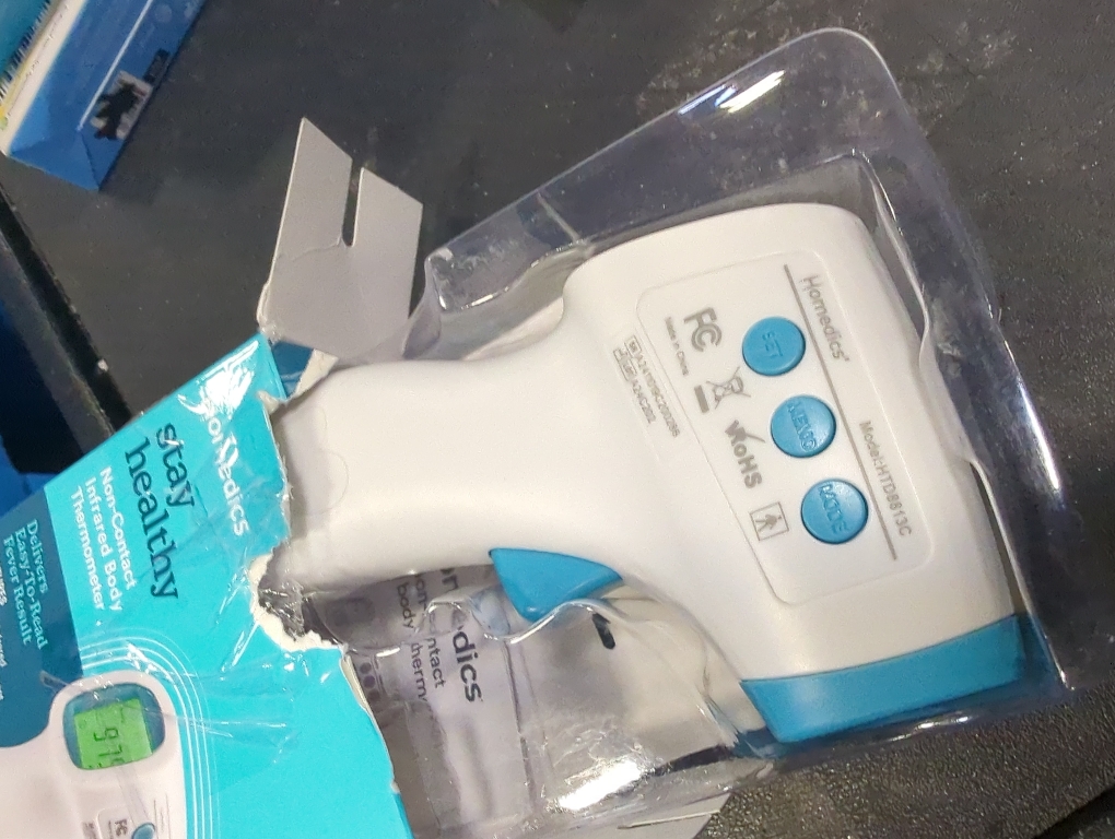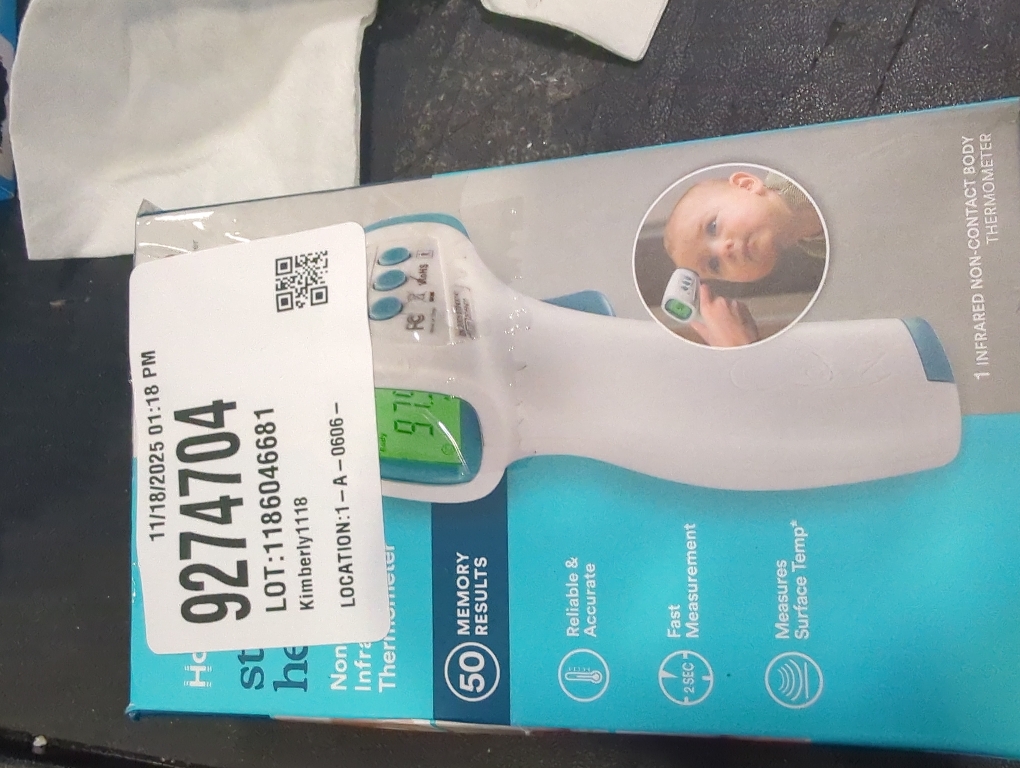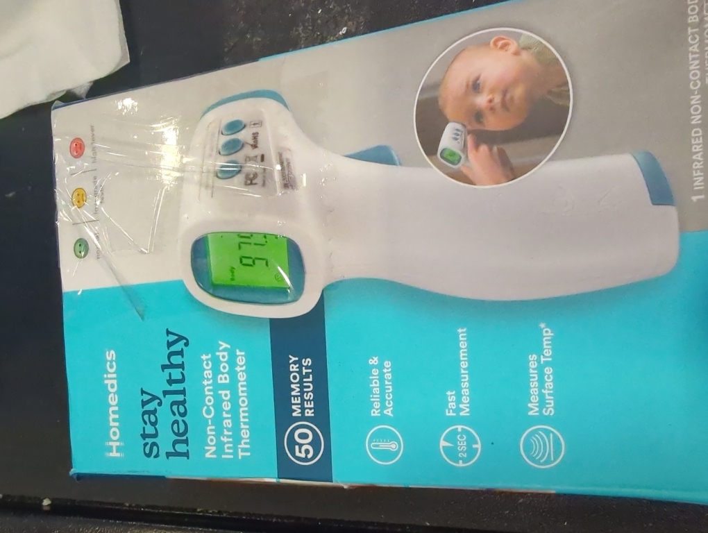 WHAT'S IN THE BOX: (1) HoMedics Non-Contact Infrared Thermometer.