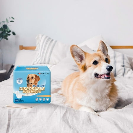 Honey Care All-Absorb A26 Male Dog Wrap, 50 Count, Small,Super Absorbent, Breathable, Wetness Indicator