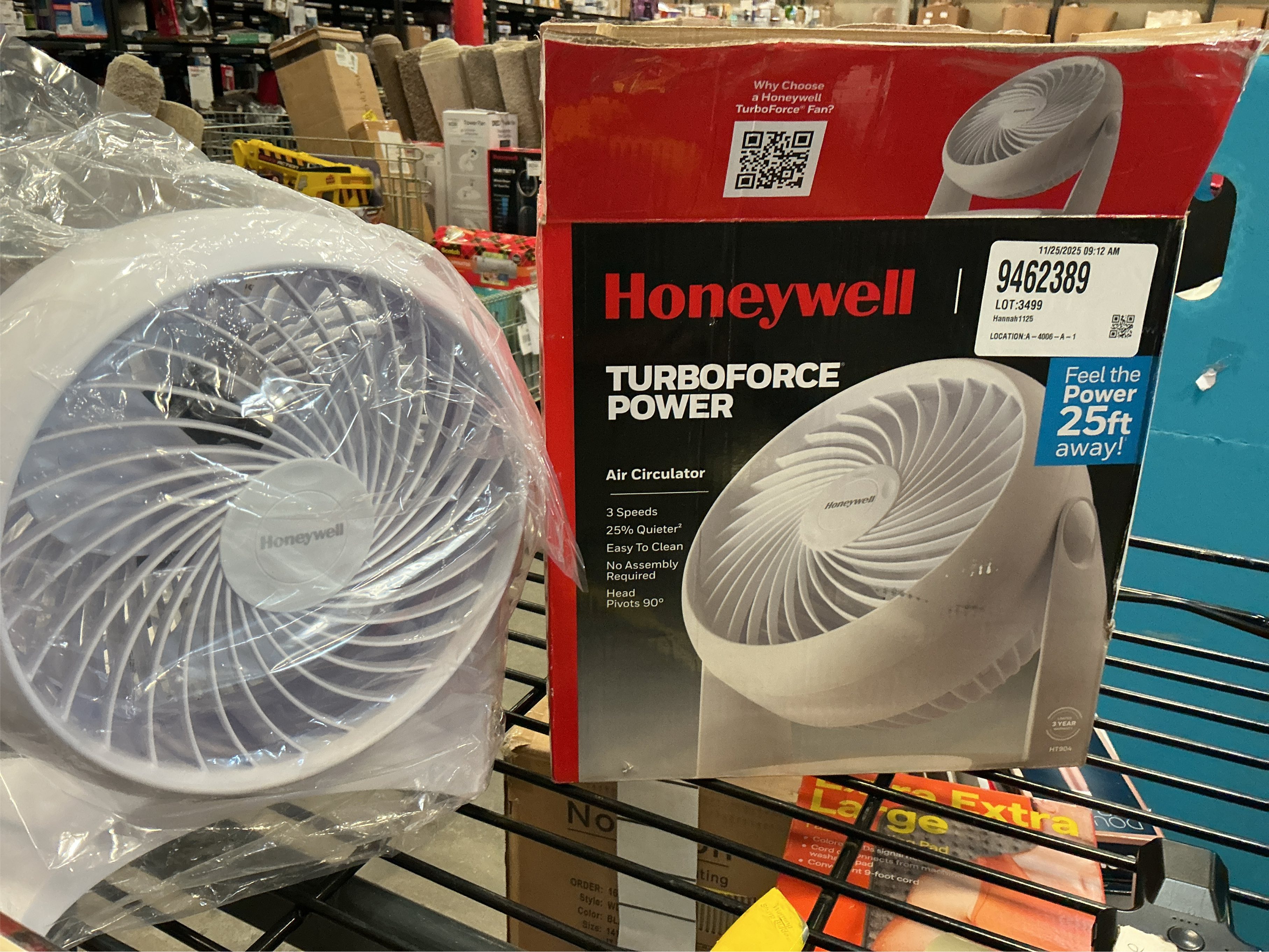 The 3-speed Honeywell HT-904 TurboForce Air Circulator provides a quiet and efficient means of cooling a surrounding area. The HT-904 is 25 percent quieter than its competitors and represents a superior selection for those seeking a relatively noiseless experience when it comes to emitting large amounts of cool air. An adjustable fan head is fully capable of pivoting and reaching a 90-degree angle that can be used for direct cooling or circulating the air. Maximum air distribution is achieved via the inclusion of an Aerodynamic Turbo Design. This fan's small size and efficient output opens a wealth of installation options in the home, office, or dorm setting. The availability of three selectable speeds carries the bonus of potentially reducing energy expenses. The TurboForce Air Circulator Fan can be used for personal or powerful directional cooling. Feel the blast of the TurboForce Power Air Circulator Fan from 25 ft. away. These portable fans' 3-speed settings and 90-degree pivoting head are designed to work with the cooling and heating in your home to create a custom comfort zone. Uniquely engineered fan blades provide quiet, powerful personal cooling that is great on a tabletop or mounted to the wall in your home or office.