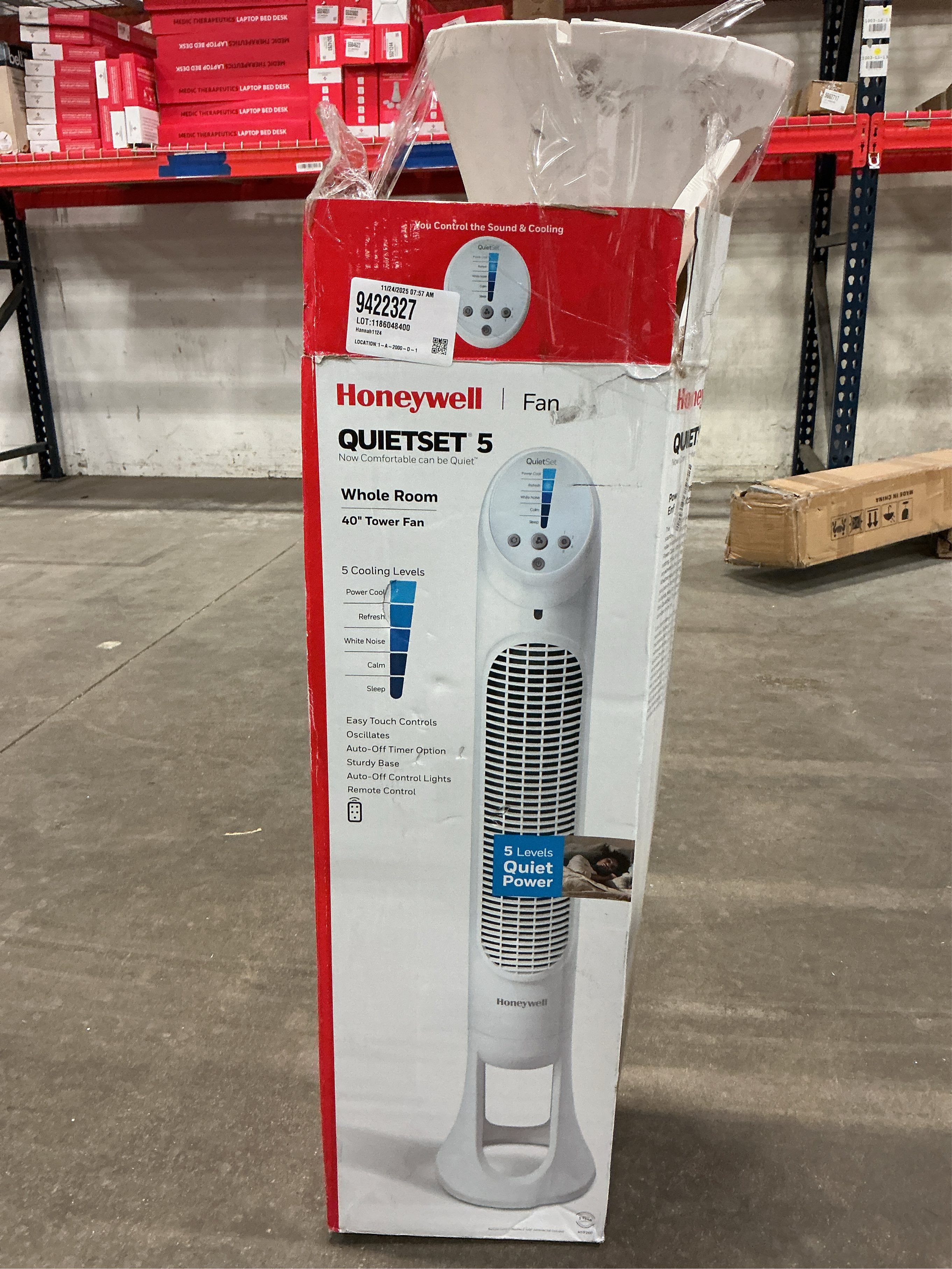 The Honeywell Quietset tower fan provides powerful whole-room cooling with quiet operation, oscillation, and an automatic shut-off timer. 5 levels of sound and power settings let you choose what is best for your environment. Control panel dimming feature - 5 lighting selections, 100 percent, 75 percent, 50 percent, 25 percent, and off. Honeywell QuietSet line of fans is quiet and powerful, so you will feel the fans cooling power with less sound. Using fans for air circulation in your home can help Increase your comfort, and help reduce energy costs as well. The right fan helps cool you off and improves airflow in your room or home; Give your air conditioner and wallet a break by using fans to help reduce your energy consumption and costs. Help improve air circulation and energy savings in your home, bedroom, or office with Honeywell fans; 5-speed settings to adjust to your personal sound and cooling power preferences