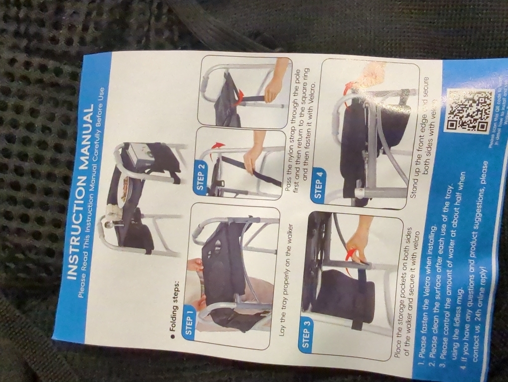 Durable:The walker tray combines a sturdy PP inner frame with a practical outer fabric covering. This design ensures stability during use and simplifies maintenance with its wipeable surface.