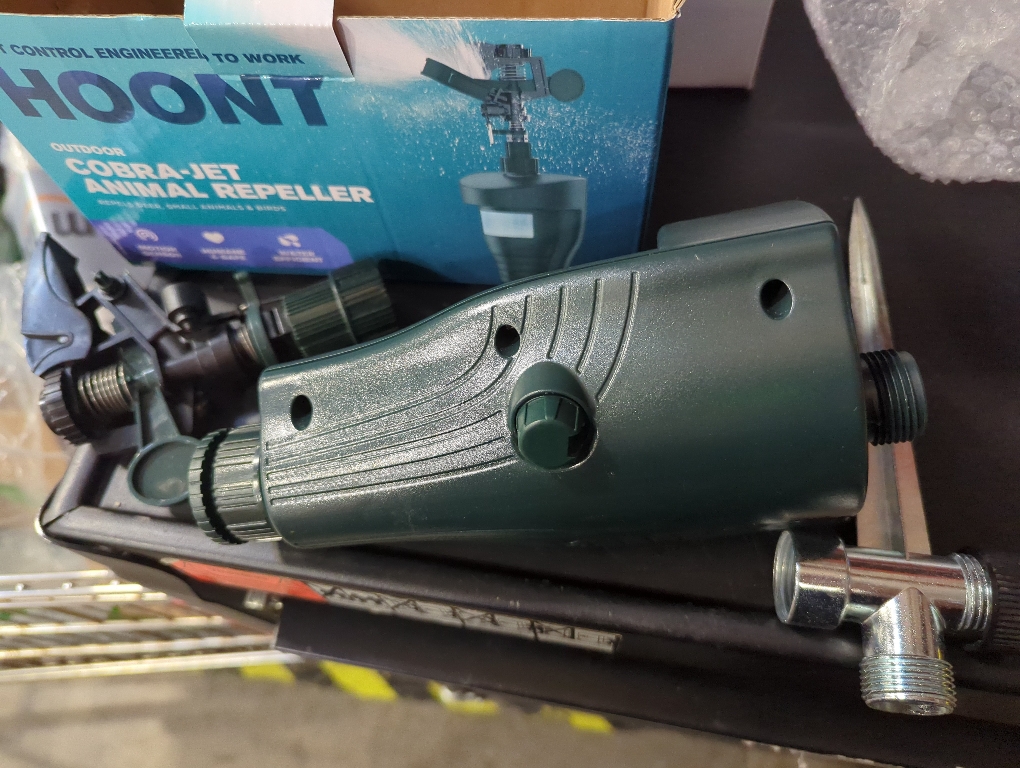 POWERFUL & EFFECTIVE - The Hoont Water Jet Blaster Animal Repeller is a motion activated water sprinkler equipped with an advanced animal detection technology which ensures accurate and quick activation to repel animals as soon as it enters. A powerful yet harmless jet of water gets sprayed as soon as it detects an animal invading your property. Scares away all animals such as cats dogs squirrels skunks deer wild animals birds etc. EASY SET UP – Choose the area where animals are roaming insert the Hoont Motion Activated Sprinkler pest control unit into the ground using the provided stake and connect to a garden hose. As soon as a pest animal is detected by the motion sensor a powerful blast of water is sprayed to scare the pest away.The water sprayer is fully adjustable; allowing to point exactly which area should get protected and sprayed and to select the distance of coverage. LOW WATER CONSUMPTION - When the built-in sensor detects movement within a range of up to 30 feet the jet of water is activated for approximately 5 seconds. Animals are frightened by this jet of water and immediately leave the monitored area. The jet of water is only reactivated when movement is once again detected. This ensures high effectiveness with very low water consumption. 100% SAFE & SAFE - The Hoont Water Jet Blaster Animal Repeller is the most humane method for keeping animals and pests out of your property. It doesn t kill or harm the animals; it just sprays them with an annoying squirt of water thus forcing them to leave the area. With no messy traps chemicals or pesticides; it’s absolutely safe for you your kids and for your pets. SPECIFICATIONS – Requires 4 “AA” batteries (Batteries not included) / Motion sensor detection range up to 30 ft. / Detection angle: Approx. 120° / Water spraying angle: 360° (adjustable) / Monitored area: Approx. 650 sq. ft. / Effective during day and night. / Package includes the full kit; ready to put into action (Includes motion detector water sprayer hose connection and stake.)Monitored area: Approx. 650 sq. ft. / Effective during day and night.