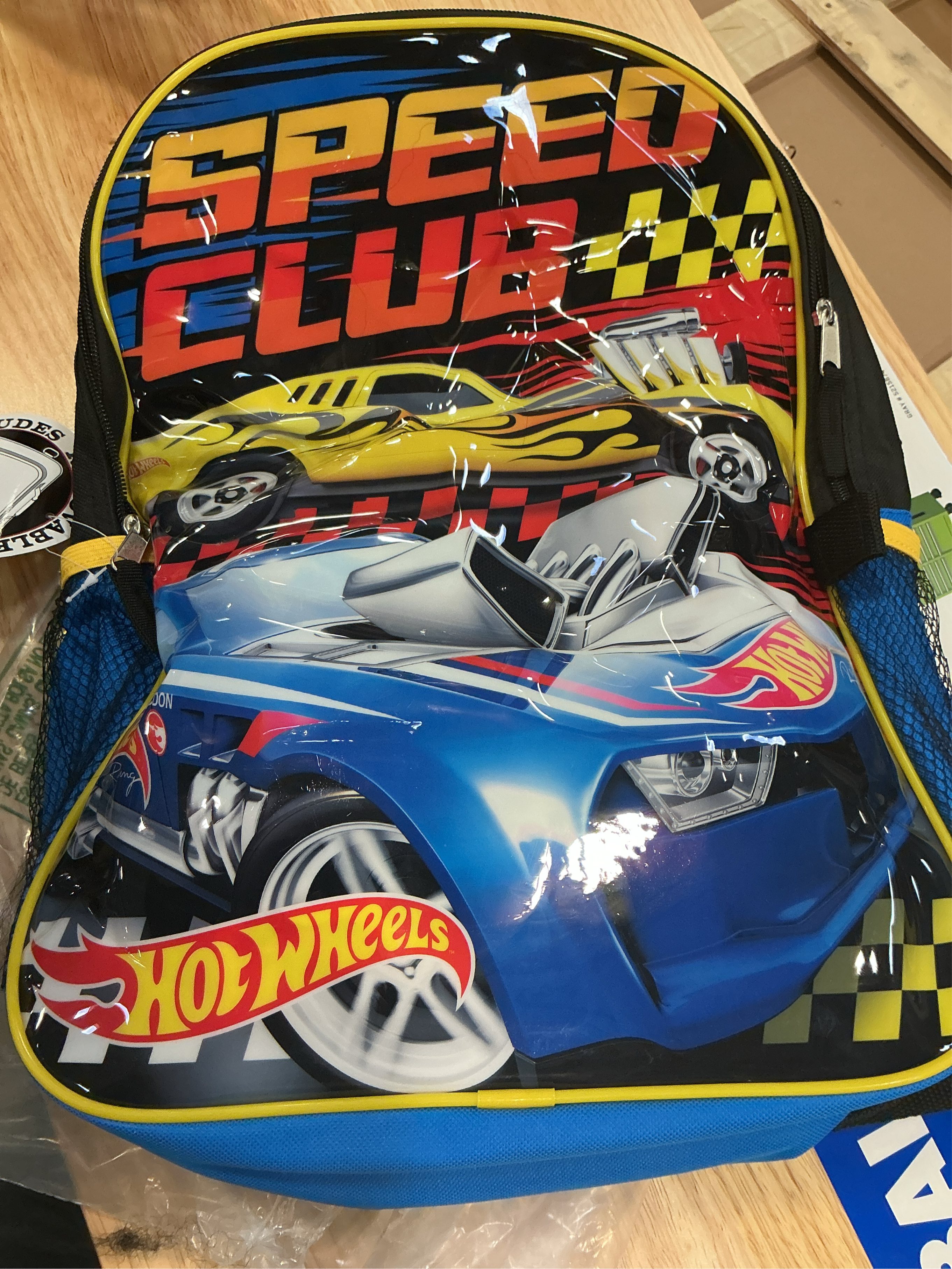 Are you brave enough to accept the challenge? Send your kids off to school with this awesome Hot Wheels backpack with a detachable (insulated) lunch bag! > Kids Hot Wheels 16 Backpack & Detachable Insulated Lunch Bag 2-Pcs Race Cars. > Backpack features large graphic print of Hot Wheels cars racing on the front. Text reads Speed Club. > Includes a bonus detachable insulated lunch bag featuring a race car and the Hot Wheels logo. > Made of durable canvas material with hook & loop strap attachments. > One side mesh pockets for drinks water juice etc.