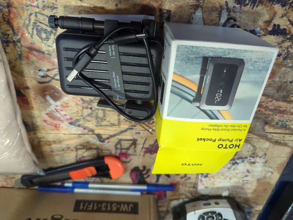 WHAT'S IN THE BOX: 1 x HOTO Air Pump Pocket, 1 x American Air Valve, 1 x Presta Valve Adapter, 1 x Needle Valves Adapter, 1 x Quick-connection Valve Adapter, 1 x Type-C Cable, 1 x Soft Rubber Band.