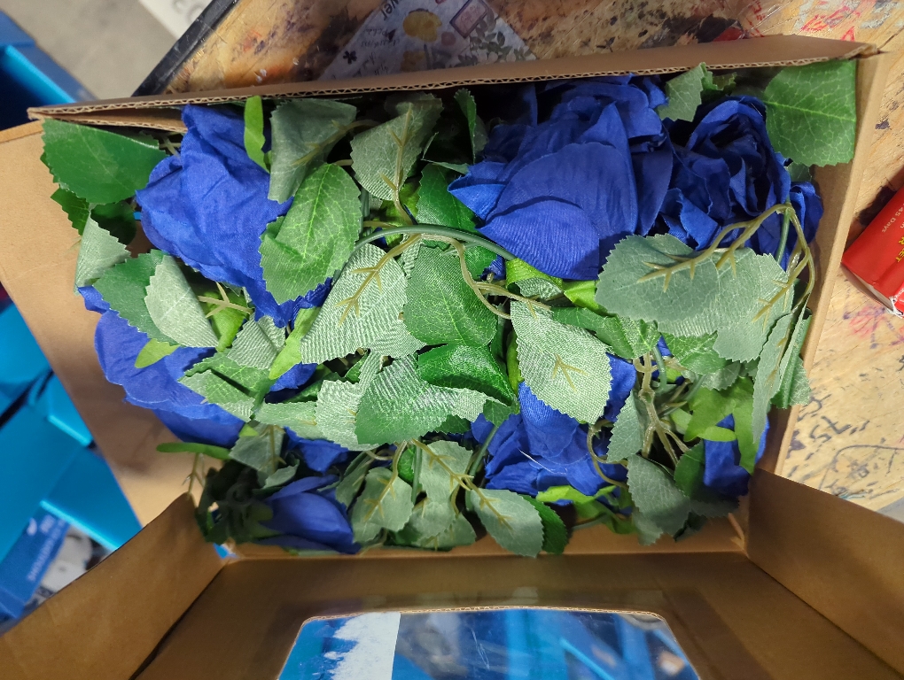 Huata 3PCS 6.56Ft Artificial Rose Flower Silk Vine Hanging Wedding Decor Garlands Home Outdoor Indoor Decor Flower (Blue)