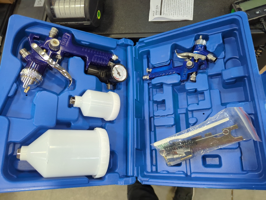 Easy to Clean and Carry: The surfaces of the two spray guns are spherical and easy to clean. In addition, this spray gun kit is specially equipped with a blue tool box for easy carrying. After using it, put it back for next use.
