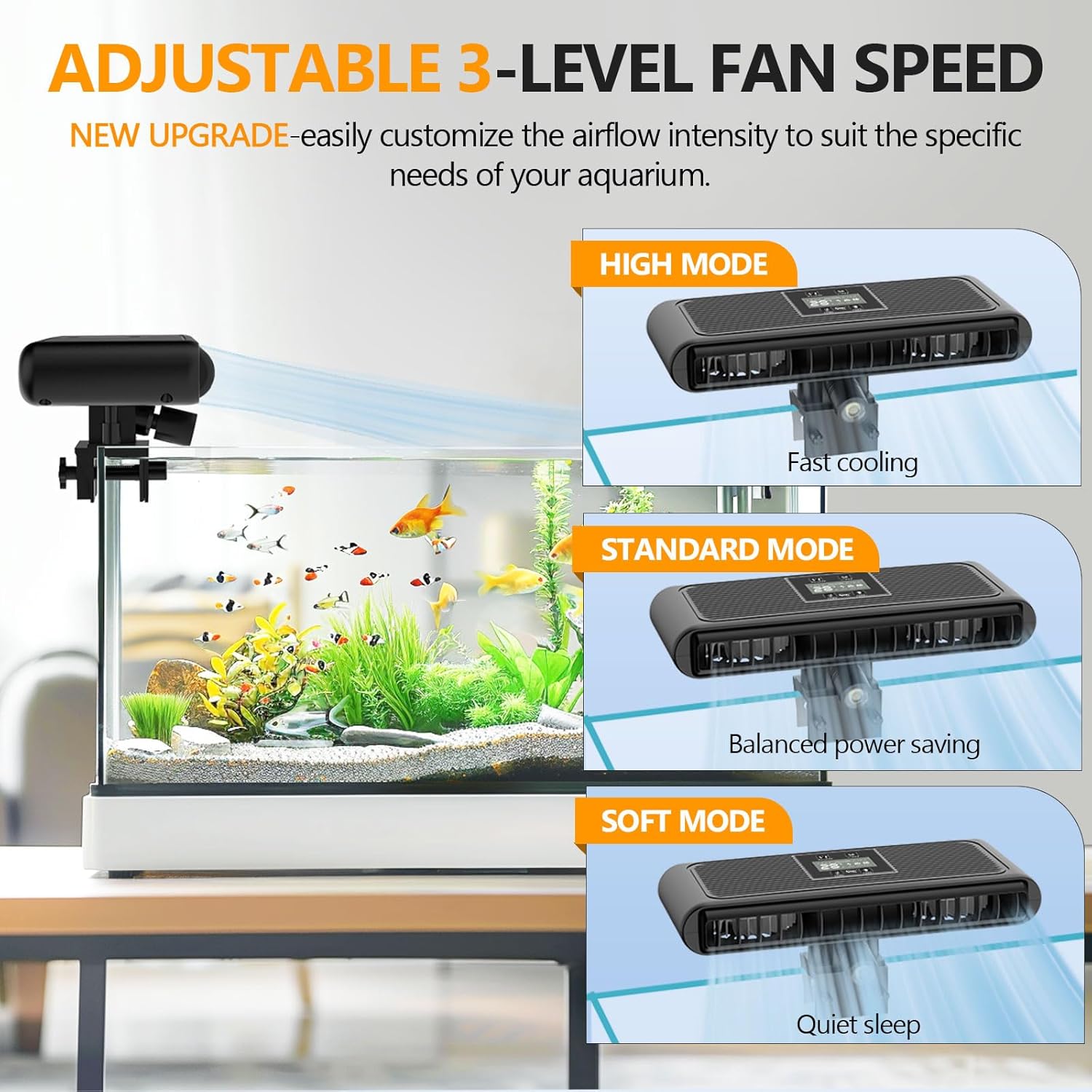 hygger Aquarium Chiller Fan, Auto Temperature Control Aquarium Cooling Fan with Adjustable Temperature and 3 Wind Speed, Quiet Fish Tank Cooler