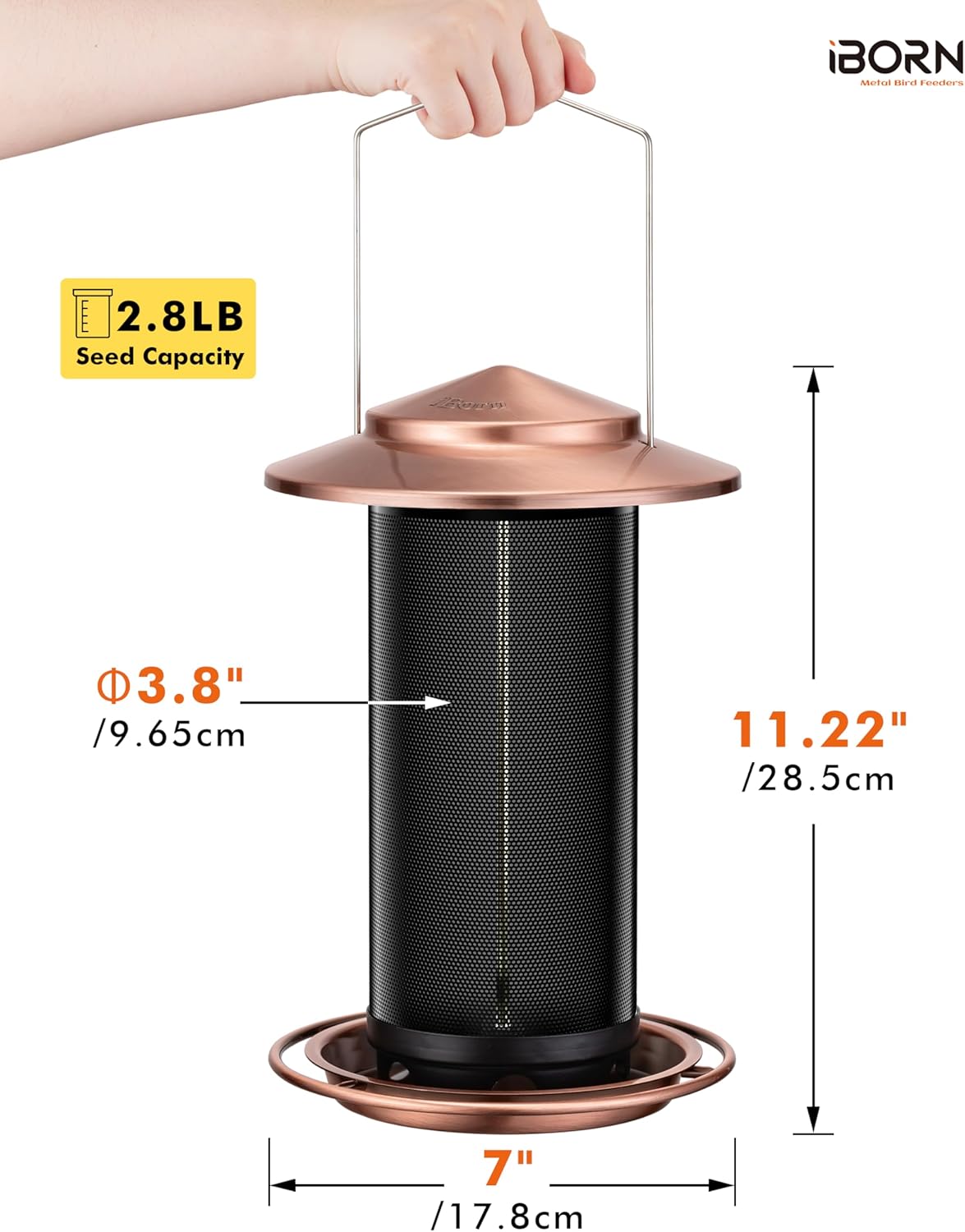 iBorn Bird Feeders for Outdoors, All Metal Mesh Tube, Holding Bird Seed for Outside Feeders,18cm Large Roof, Copper, 2.8lb(Seed is not Included)