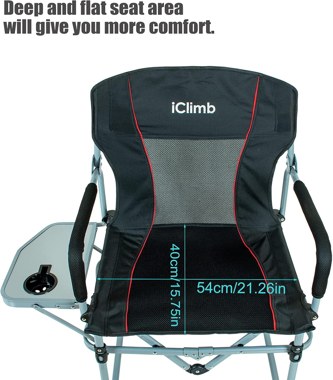 3. iClimb Heavy Duty Compact Camping Folding Mesh Chair with Side Table and Handle