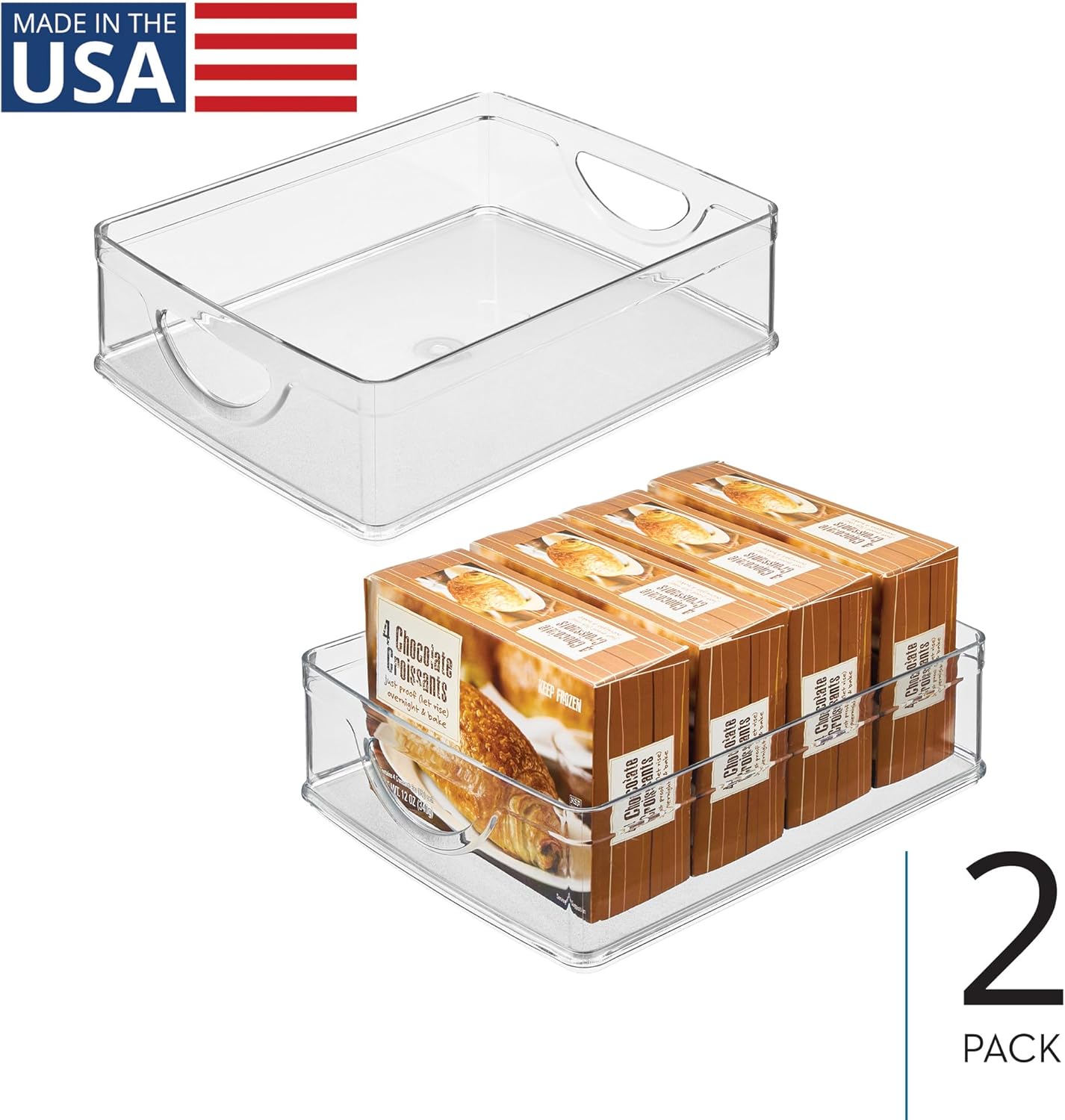 iDesign Plastic Stackable Pantry Bin - Storage Bin with Handles for Cabinets or Fridge - Set of 2 - Clear