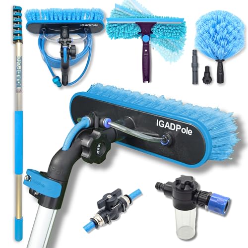 IGADPole 3-in-1 Window Cleaning Kit - (24ft/ 7m) Window Washing Cleaner Equipment Kit Squeegee, Scrubber, Soap Despencer & 8m Water Brush Cleaner