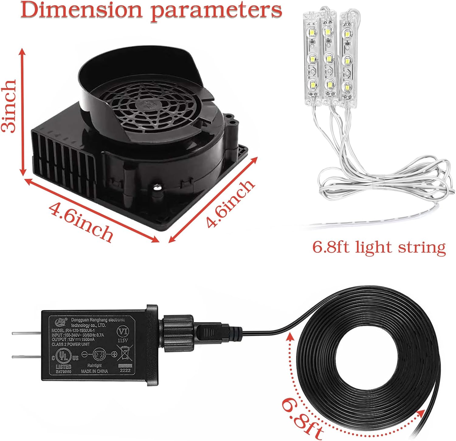 【Package Contents】you can get 1 pieces of Replacement fan blower,1 pieces of Power adapter Power cable,1 pieces of Light String,the quantity is sufficient to meet your daily use and replacement needs.