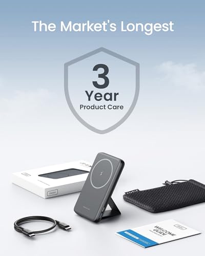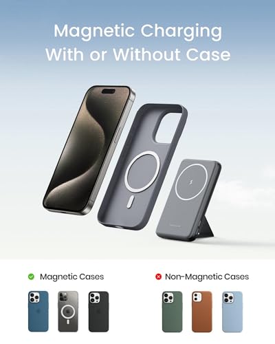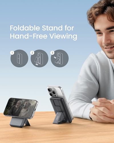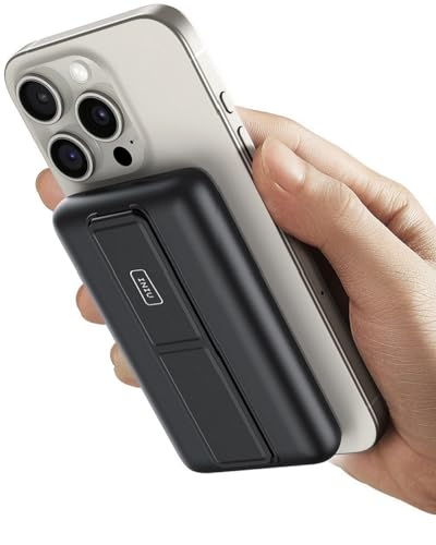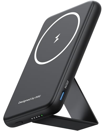 INIU for MagSafe Battery Pack, Slim 6000mAh 20W Magnetic Portable Charger with Foldable Stand, USB-C in&Out Wireless Power Bank, Only for iPhone 15/15