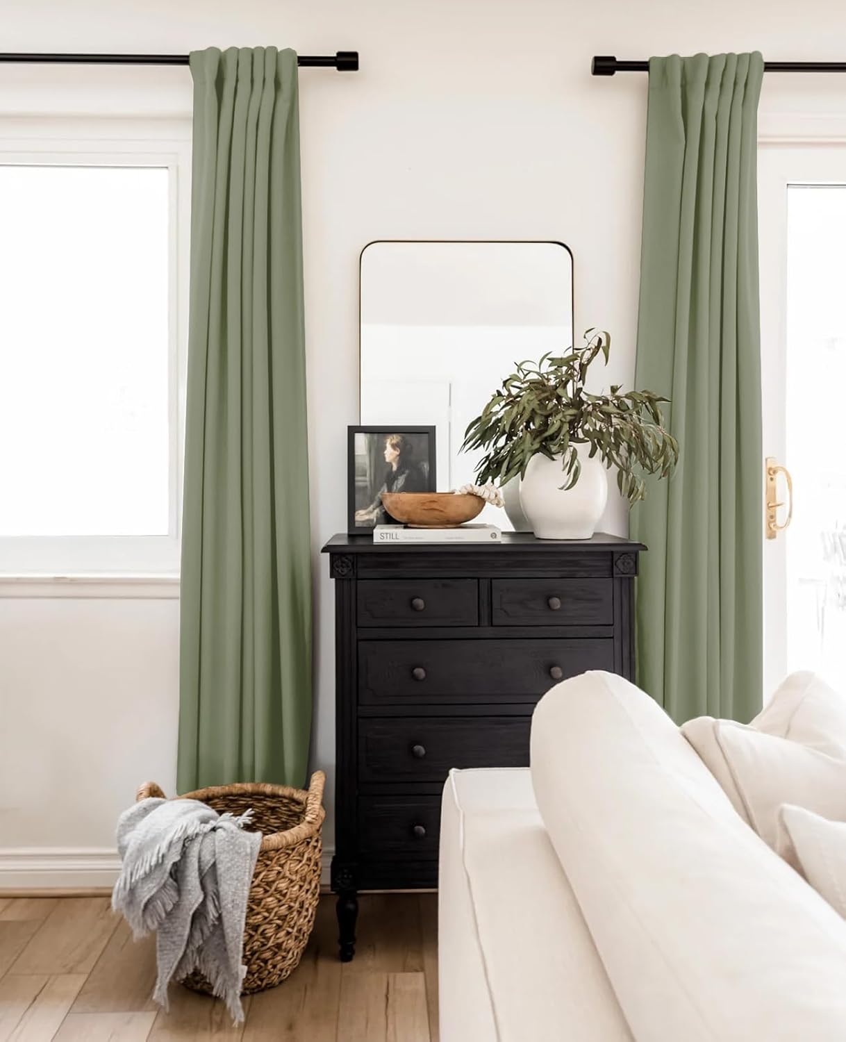【100% Blackout Effect】100% Blackout curtains. Our blackout linen curtains are crafted from soft and draped textured linen look fabric, add 100% blackout lining, which makes the drapes soft but thick enough to completely keep out the sunlight, offer you a real dark room. Perfect for toddlers sleep longer and daytime naps; Nightshift workers will have a good sleep even at daylight; Light sensitive sleepers can also wake up naturally and feel well rested