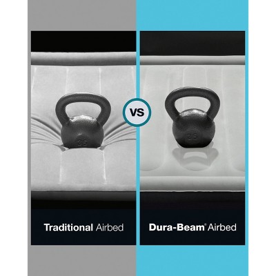 Enjoy elevated comfort with this queen-sized Dura-Beam® air mattress. Not only does it boast a “Mid-Rise” profile—with an 18-inch height for easy access—but it also features a built-in pillow to prop up your neck and head. The mattress’ velvety-soft sleep surface is bordered with edge support, effectively providing more space to securely rest. Inside, the patented Fiber-Tech® structure brings thousands of internal fibers together in supportive beams to give you a restful night. Best of all, Dura-Beam® air mattresses are tough, resisting punctures, tears and stretching for a long life of service to your sleep.
