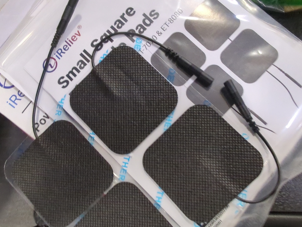 What the System Includes: iReliev Dual Channel TENS Device, 3-AAA non-rechargeable batteries to get maximum output power (80mA), 2-lead wires (1 lead wire per channel), 4/Pack of Electrode Pads, (We estimate that you can get 10-30 uses per pack with proper care), small tote bag with draw strings, device belt clip holder, operating manual and quick start guide.