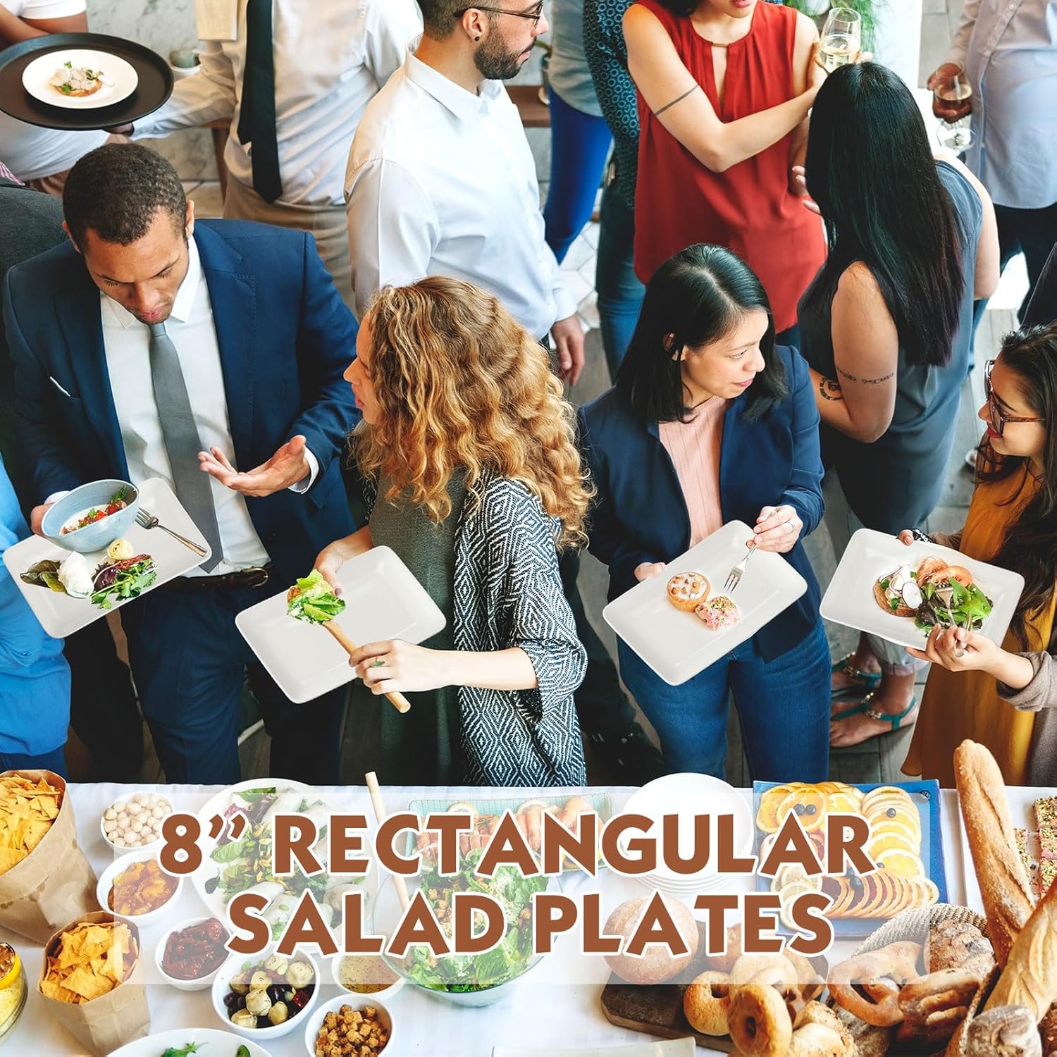 Versatile Serving Plates: the rectangular salad plates feature a rectangular shape, ideal for holding a variety of food, such as snacks, side dishes, breads, cheeses, fruits, crackers, sushi, appetizers, desserts, vegetables, cupcakes, cookies and more, and the simple design can better show the delicious and tempting food
