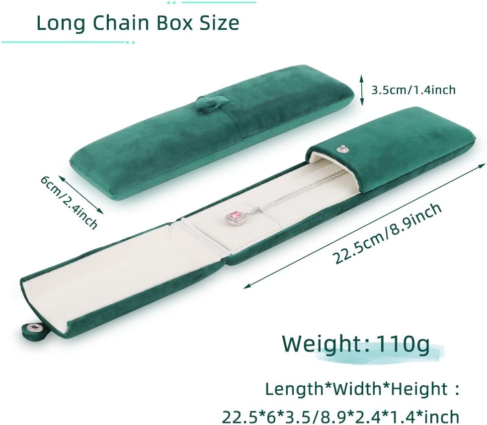 High-quality material: The long chain box is made of high-quality velvet material, which is soft and comfortable to the touch. The inner material is also high-quality velvet, which can well protect your pendant or necklace from any form of damage.