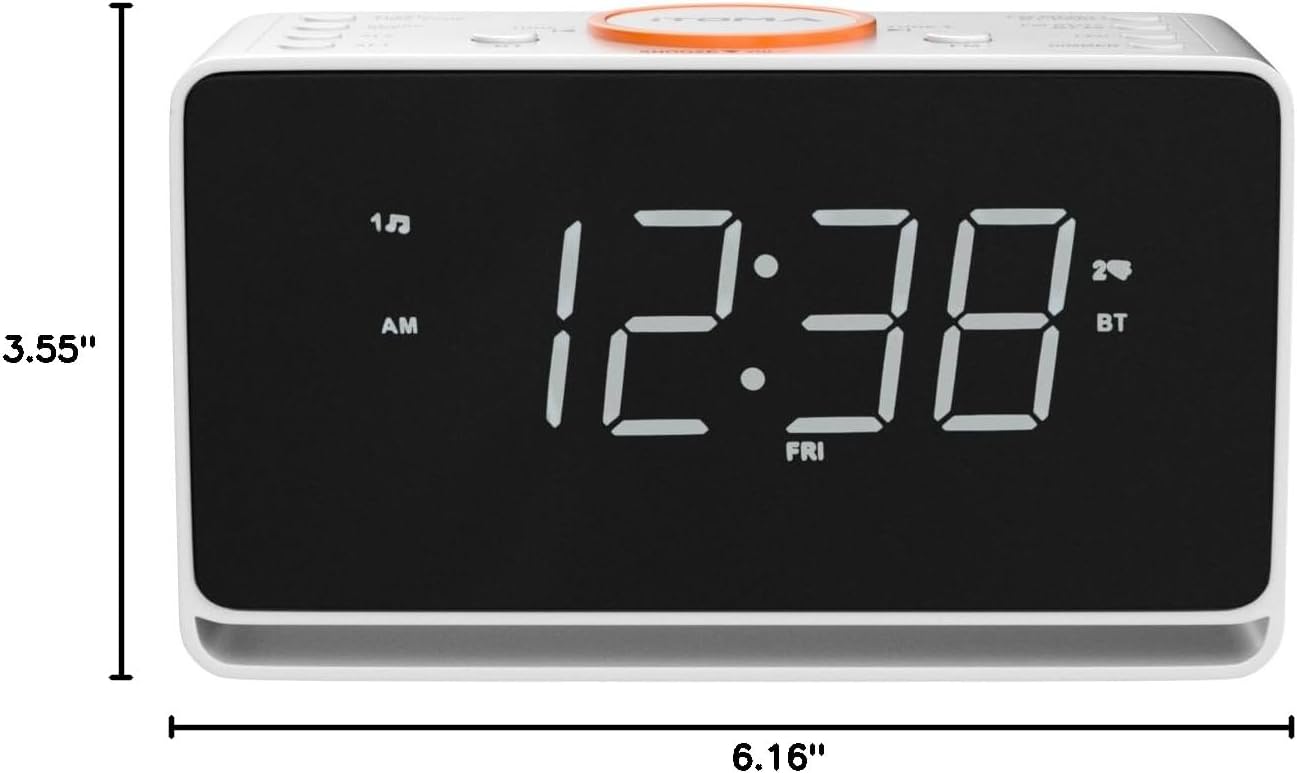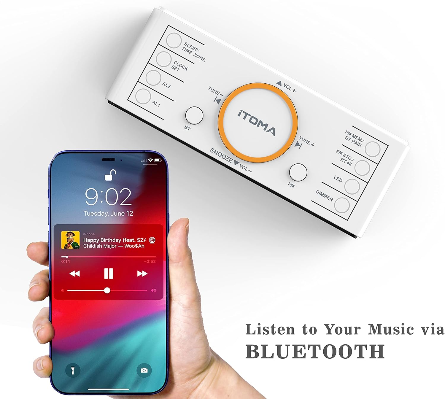 iTOMA Alarm Clock Radio, 1.4" White LED Display Clock with Bluetooth, FM Radio, Dual Alarm, Sleep Timer, Snooze, Auto & Manual Dimmer, USB Charger and Night Light CKS718