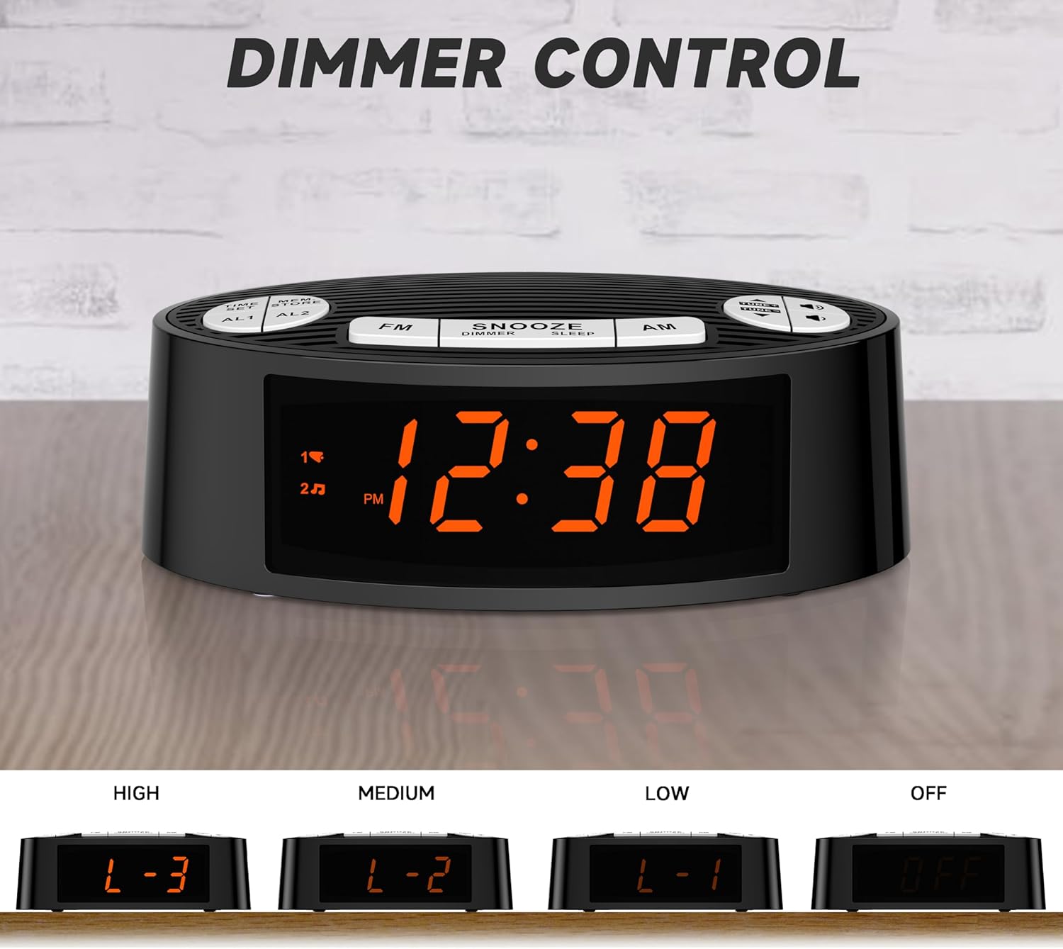 4-LEVEL DIMMER: This alarm clcok offers 4 brightness settings (L3/L2/L1/OFF) to adjust for those who may be sensitive to bright displays.You can freely adjust the display brightness from very bright to fully dark.