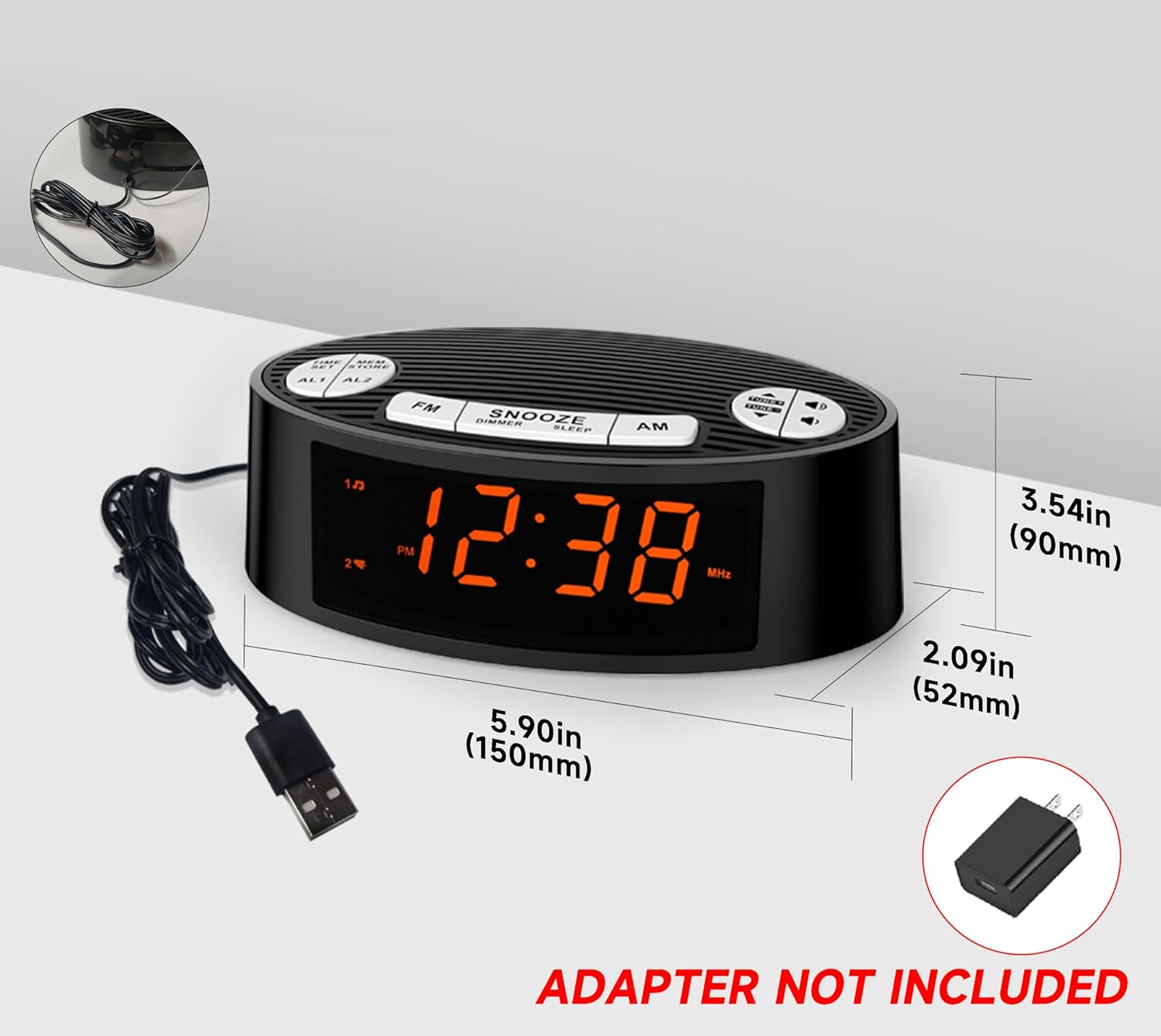 Untesded EASY TO READ: Features a 0.9” Orange LED display on the clock are very clear with extra bright quality, it is suitable for your bedroom, living room, office. NOTE: USB powered (AC Adapter not included)