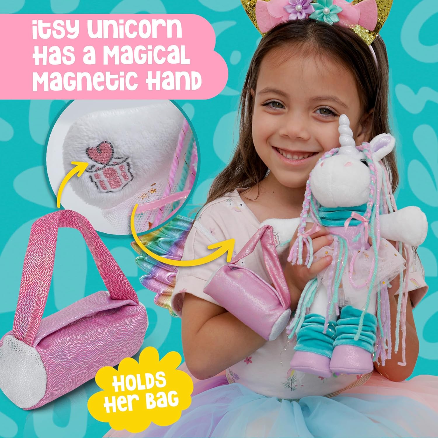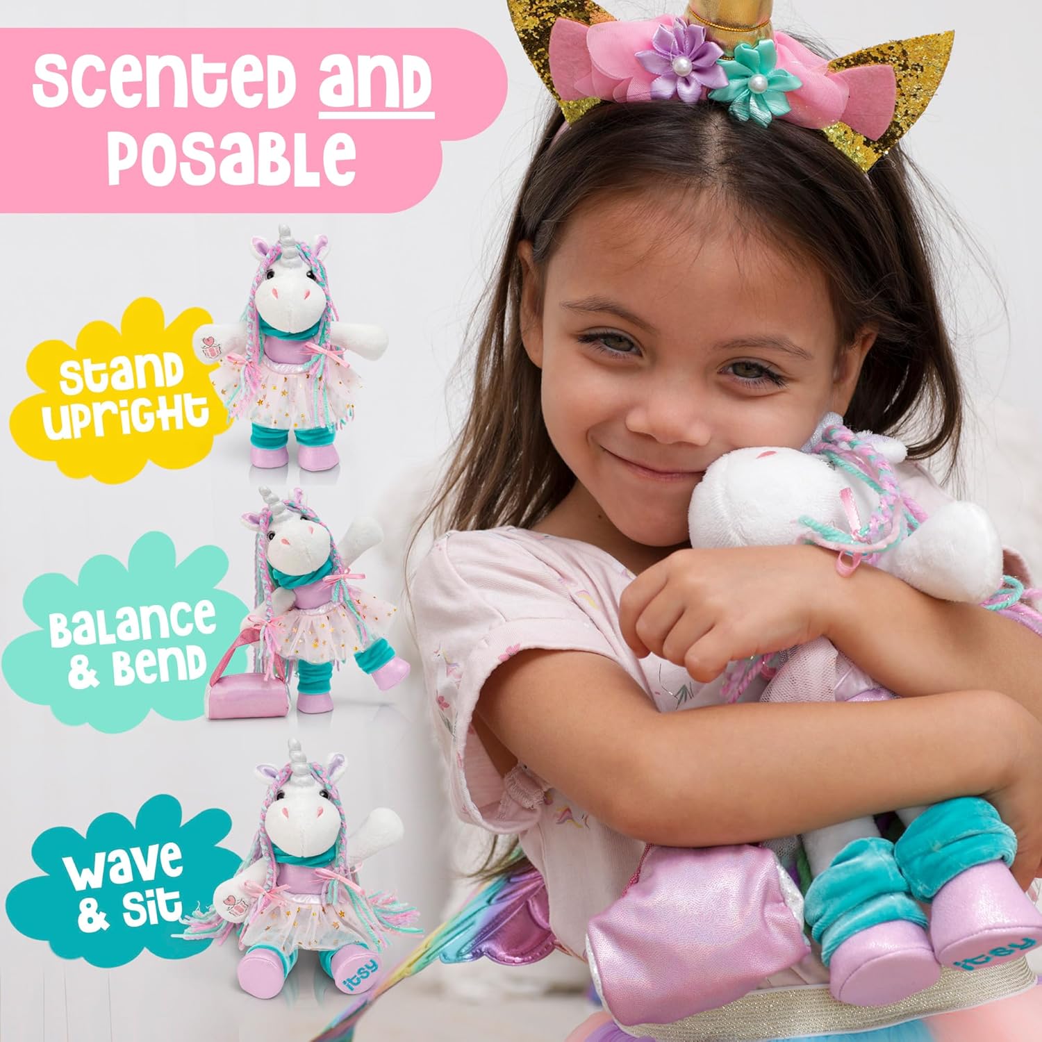 Dress-Up Fun with Itsy Unicorn: This 23 cm unicorn stuffed animal comes with a delightful removable ballerina outfit, including a pink tutu skirt, leg warmers, and scarf, sparking hours of imaginative role play. Ideal for unicorn toys for girls age 6-8.