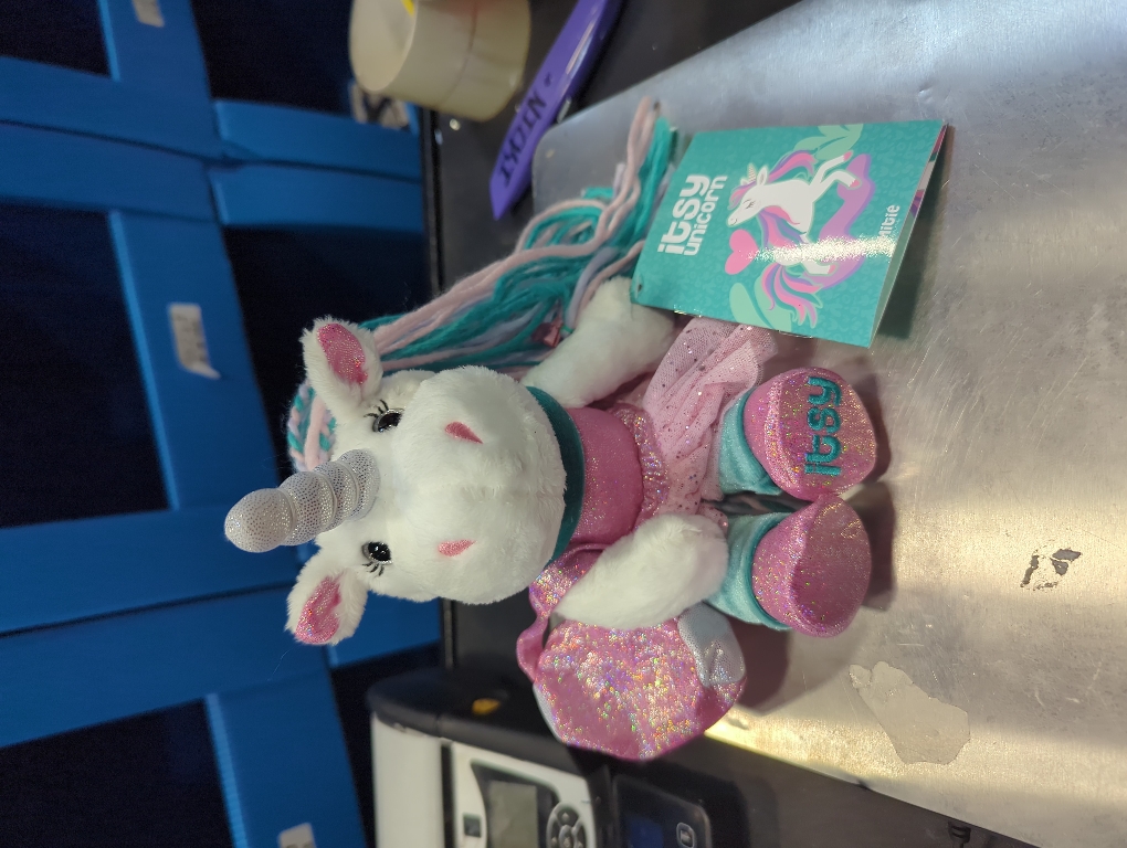 Rainbow Hair Adventures: With vibrant rainbow hair and included hair ties, children can enjoy styling Itsy's hair into plaits or other hairstyles, enhancing this unicorn plushie's play value, especially for girls unicorn toys enthusiasts.