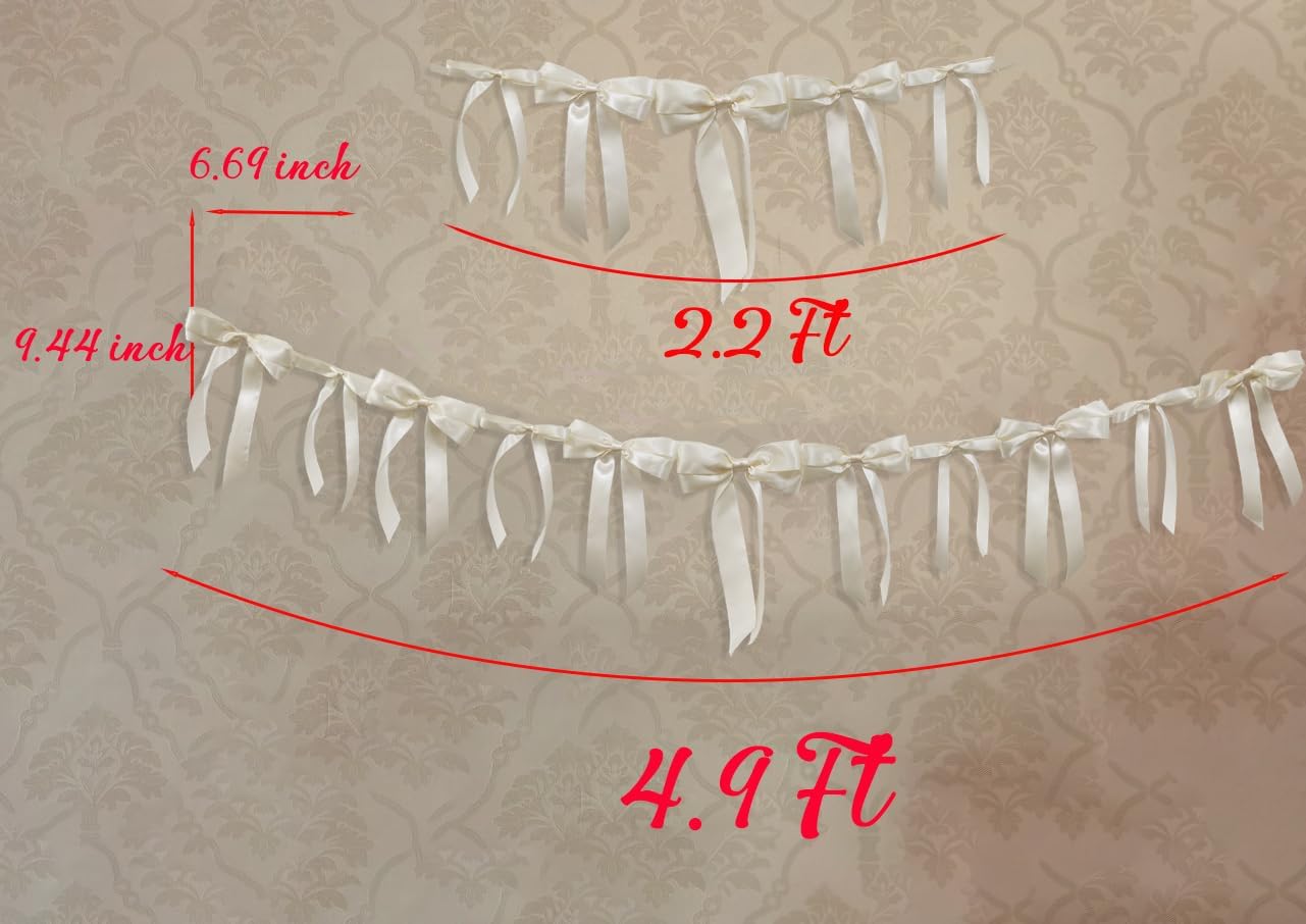 Pre-Strung Ivory White Bow Garland Size:Bow is 6.6x9.4inch,and the size of the short bow garlands wreath is 26.7 inches, and the size of the long bow garlands wreath is 59 inches,,making it suitable for decorating tables, walls, or entryways