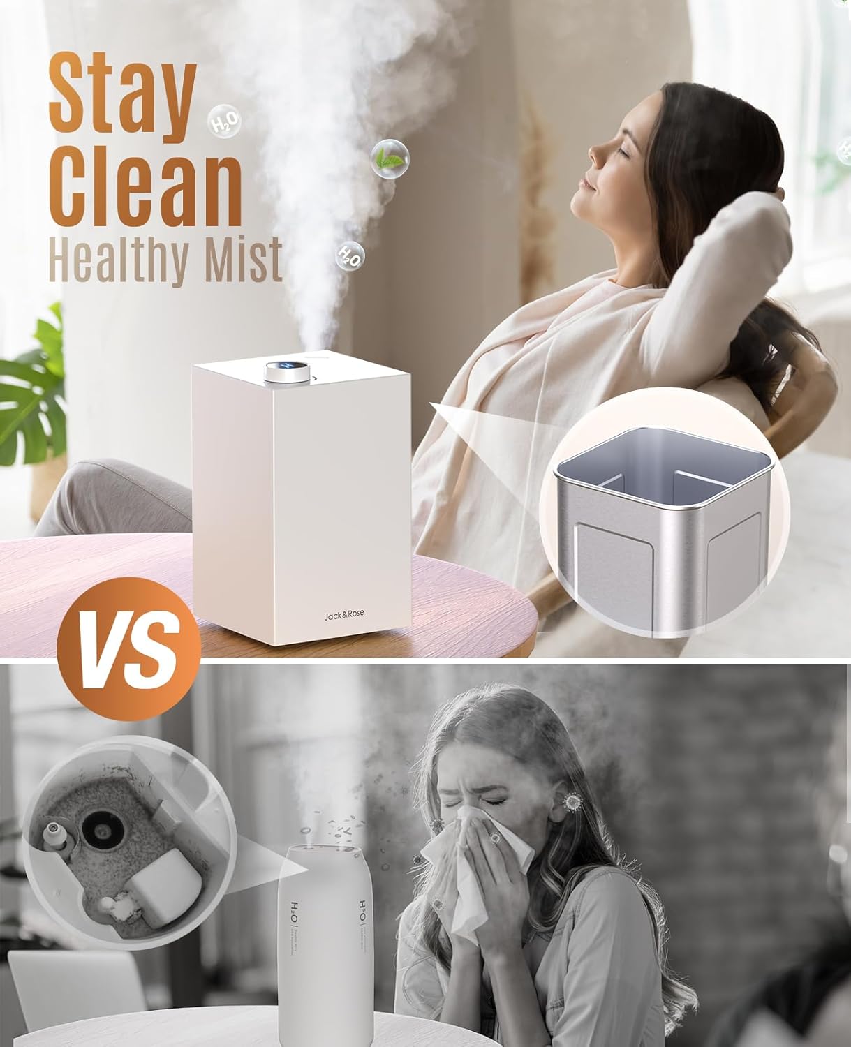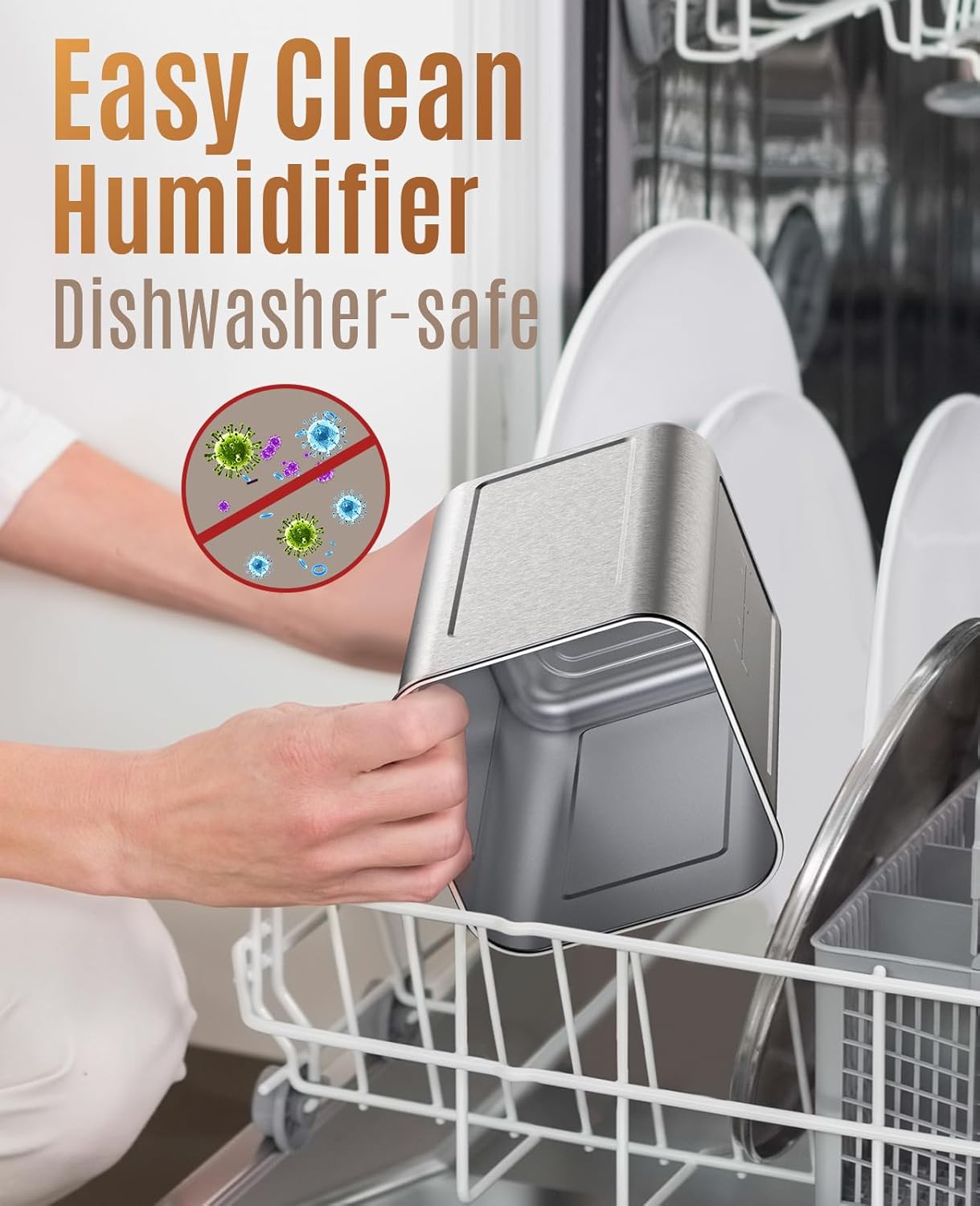 Jack & Rose Stainless Steel Humidifier, Easy to Clean Humidifier, Dishwasher Safe Humidifiers, Cool Mist Humidifiers for Bedroom