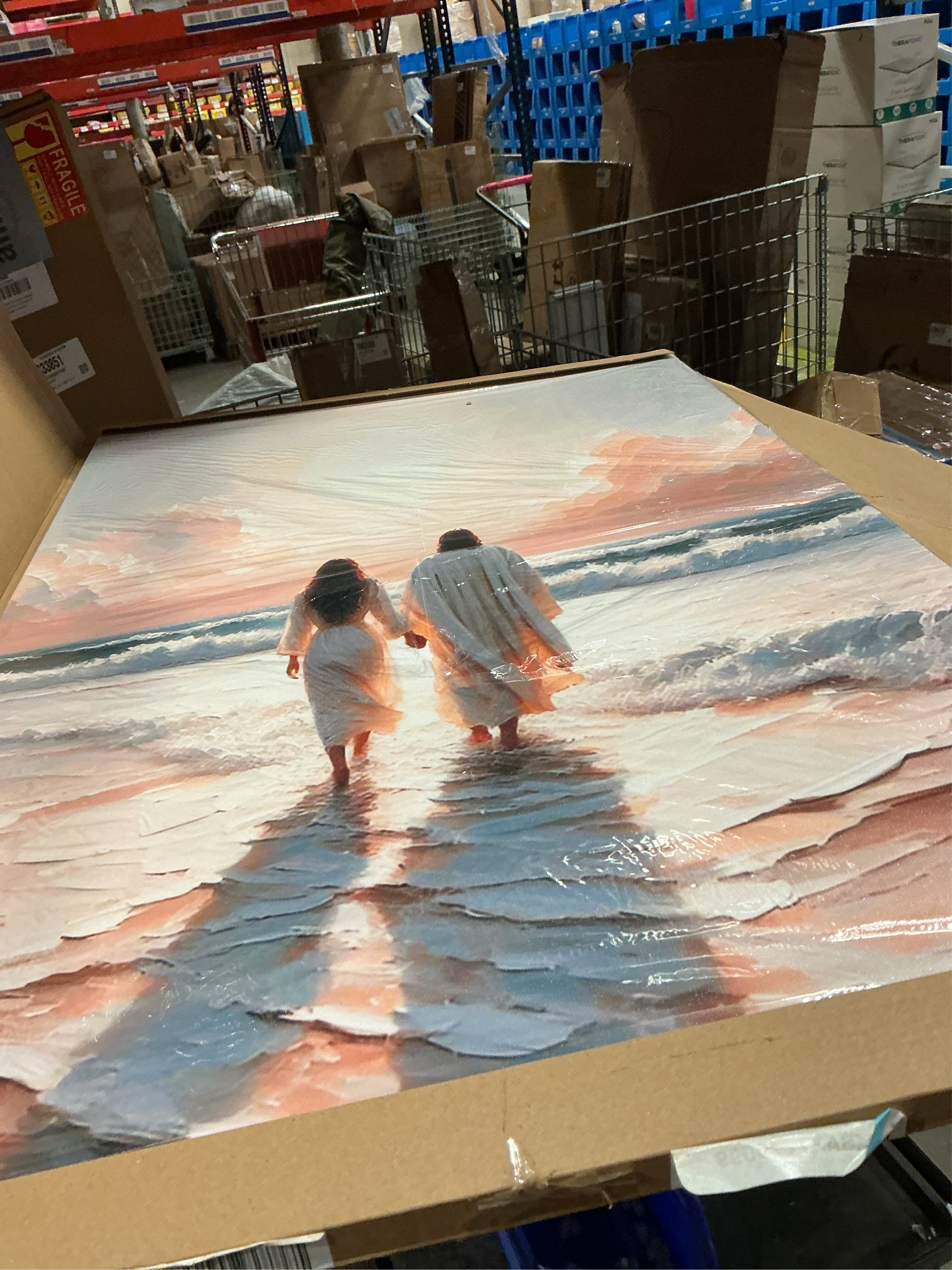 Jesus Canvas Wall Art Jesus Woman Walking on Water Wall decor pictures Religious Coastal Painting Christian poster prints for living room bedroom Home Decoration Ready to hang (24inx36in Canvas)