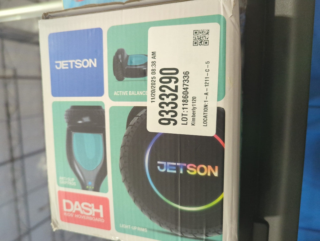 Younger kids who watch in awe as tweens and teens coast past them on hoverboards now have one they can hop on themselves. The Jetson Dash was made for them – scaled down in size and speed, so they can feel comfortable and confident while they learn. They’ll feel fully supported by the substantial, durable tires and the active-balance technology that helps keep them stable. Anti-slip standing pads over the movement sensors help their feet stay in place while they get a hang of how to make the hoverboard go. And the max speed of 5 mph is just right to thrill them while still feeling manageable. It won’t be long before they’re spinning, swerving – and showing off their moves. They will be glowing with excitement – matching the beams of multicolor lights radiating from within the wheel rims. Riders get up to 40 minutes of runtime before it’s time to recharge. The Jetson Dash is recommended for riders ages 6 and up.This item is certified to UL 2272 standards by UL Solutions.https://www.nyc.gov/assets/fdny/downloads/pdf/codes/lithium-ion-batteries-safety-tips-retailers-consumers.pdf