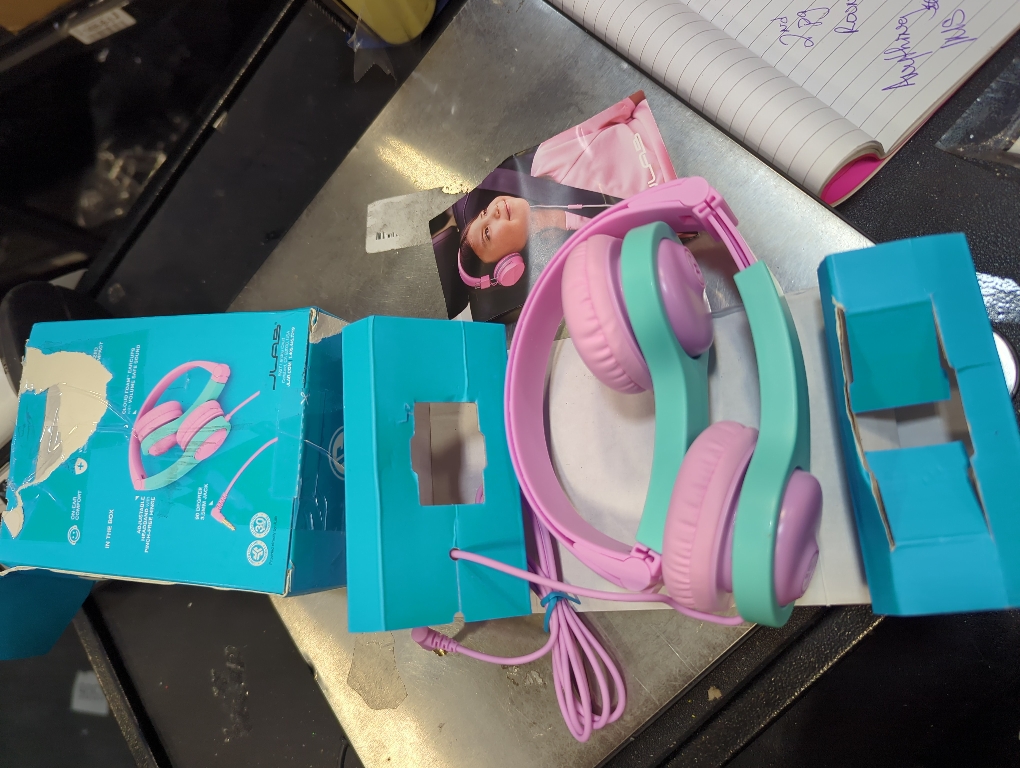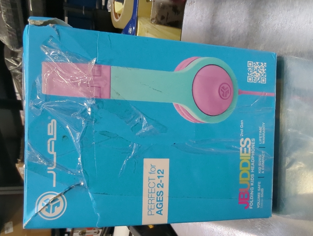 JLab JBuddies Folding Kids Wired Headphones Gen 2, Pink/Teal, Toddler Headphones, Noise Isolation, Kids Safe, Volume Limiting, for Children Ages 2