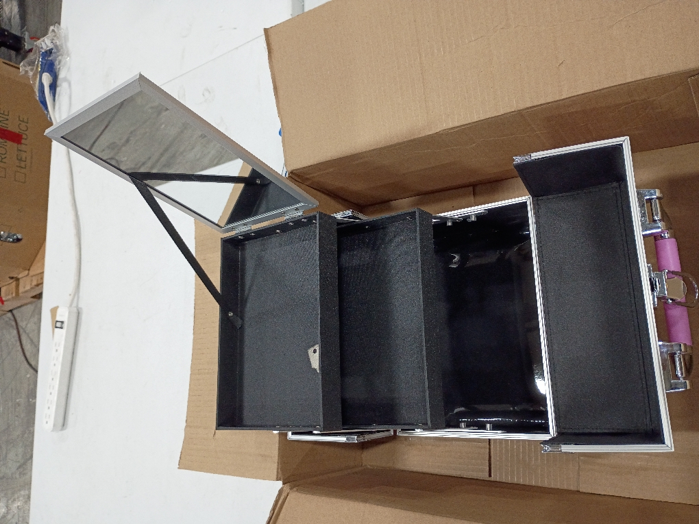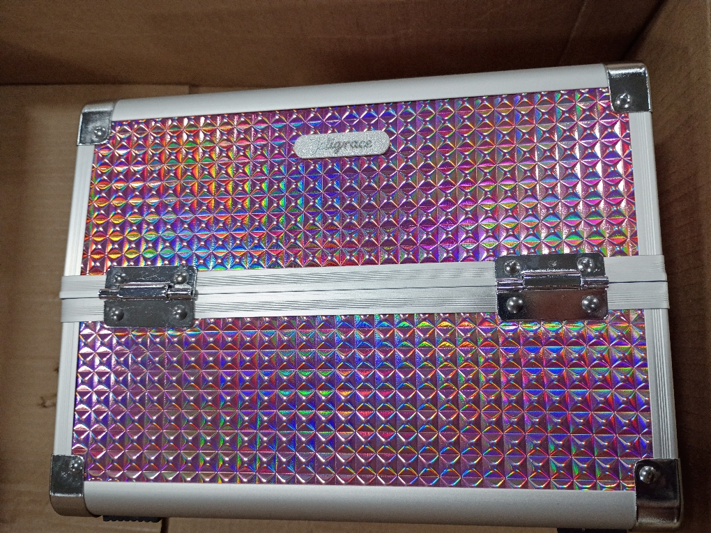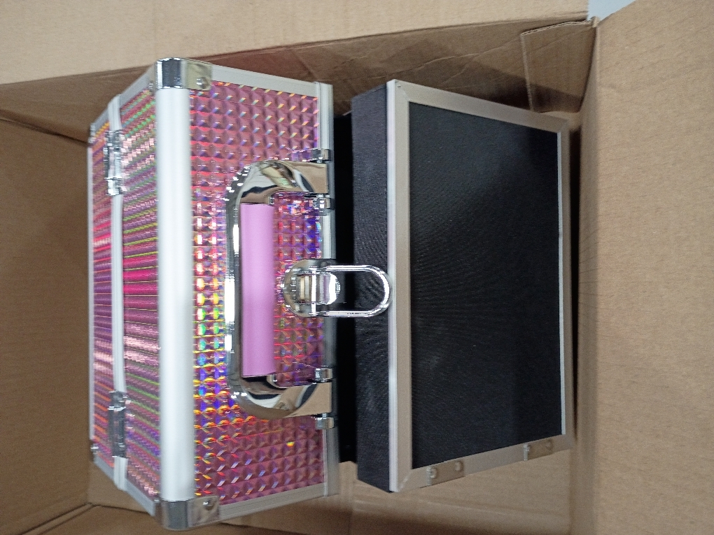 Mermaid Pink Makeup Box: Makeup box measures 9.44 x 6.69 x 7 inches, making it an ideal size for travel. Made from high-quality materials, it combines sturdy ABS aluminum with metal-reinforced corners for excellent durability. Despite its strong construction, the box is lightweight and easy to carry. Its waterproof, glittery pink surface not only looks stylish and eye-catching but also protects your makeup from moisture and other outdoor elements. The unique color subtly changes and reflects light from different angles, adding both beauty and practicality.