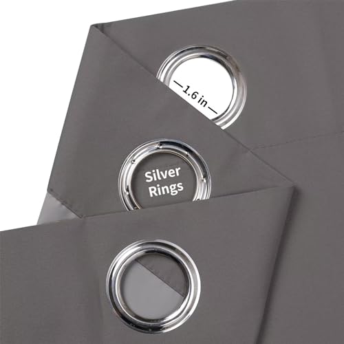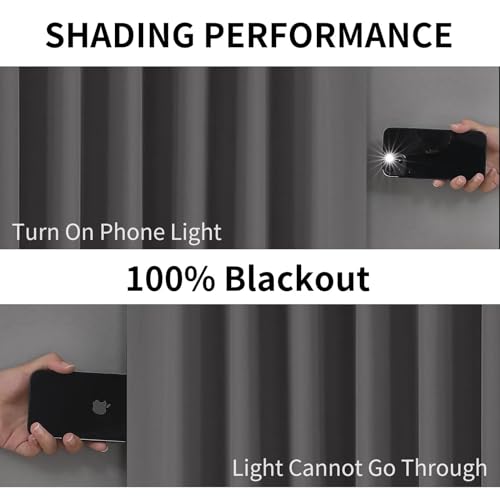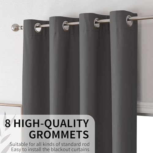 Joydeco Dark Grey Blackout Curtains 96 Inches Long for Bedroom, Room Darkening Black Curtains 96 Inches Long 2 Panels Set, Grommet Thermal Insulated 9