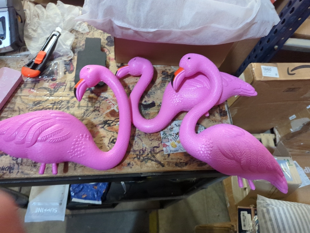 SUPER VALUE PACK. Our Yard Ornament Set includes 3 medium-sized Pink Flamingos in three different poses. Each flamingo measures approximately 9-12 inches wide and stands 20 inches tall with the stake.