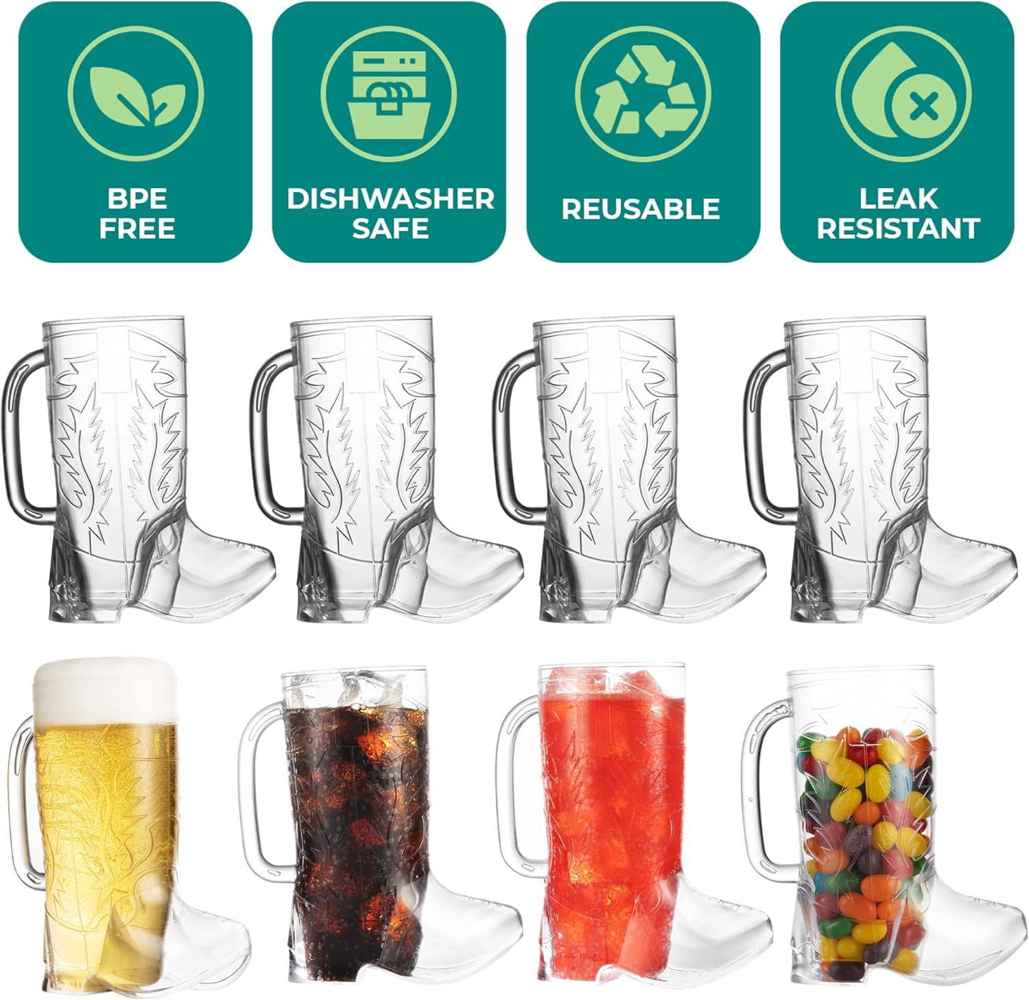 PACK OF 12 - COWBOY BOOT MUGS: Kick up your heels cowboy style with this pack of (12) Cowboy Boot Cups and sturdy handles. Each mug is made of durable hard plastic and holds up to 17 ounces of liquid. Wrangle up all your friends for your next event and use these cowboy mugs for drinks, centerpieces, party favors and more.