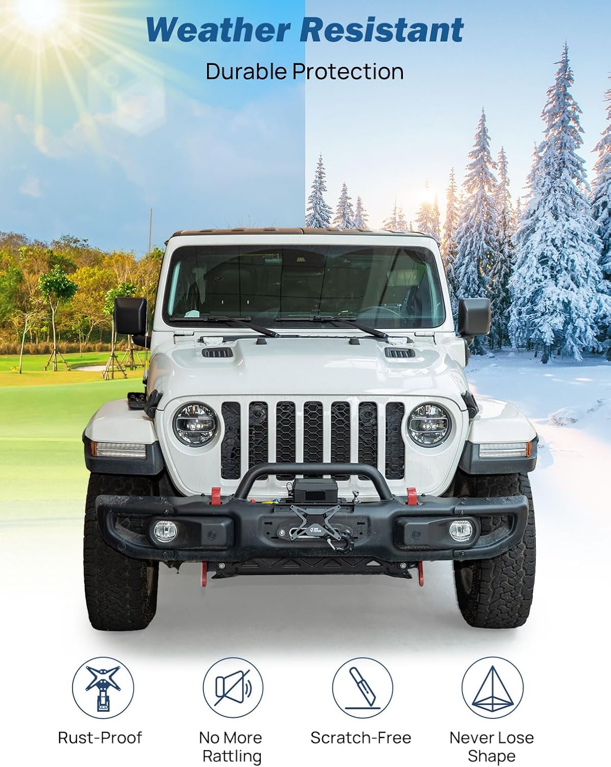 【Perfect Fitment】Front bumper license plate holder compatible with most off-road vehicles and pickup trucks having a 10-inch hawse fairlead mounted on the bumper. Provides a clean and sleek look to your vehicle. Not fit with roller and 2024 Wrangler (original winch)
